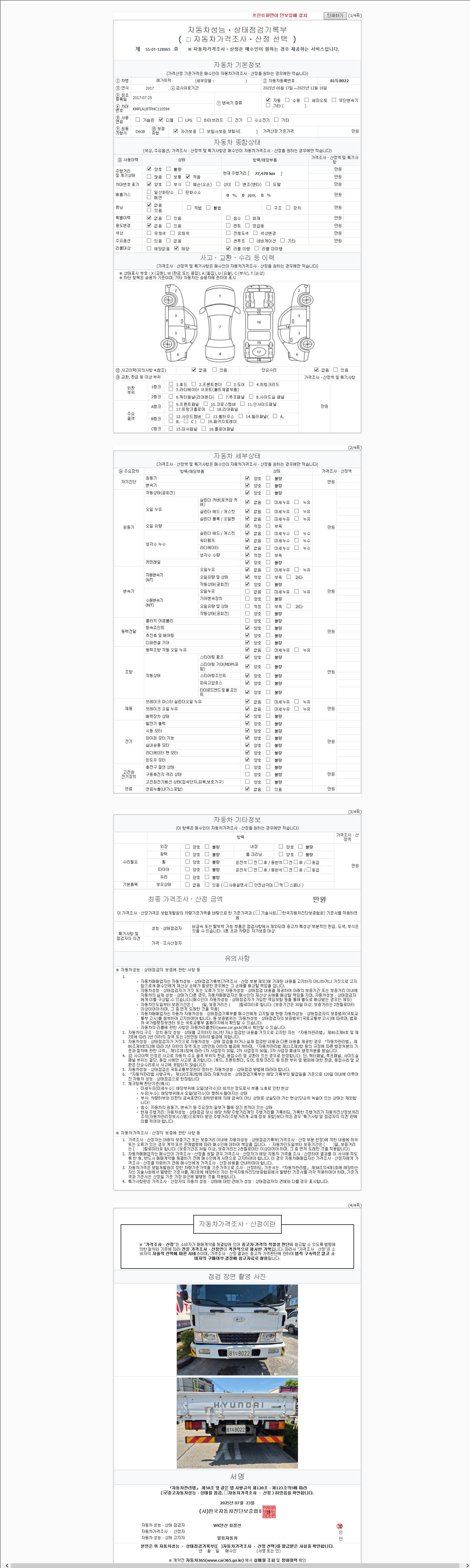 | 주행거리 | 77,450 km | 차량번호 | 81두8022 |