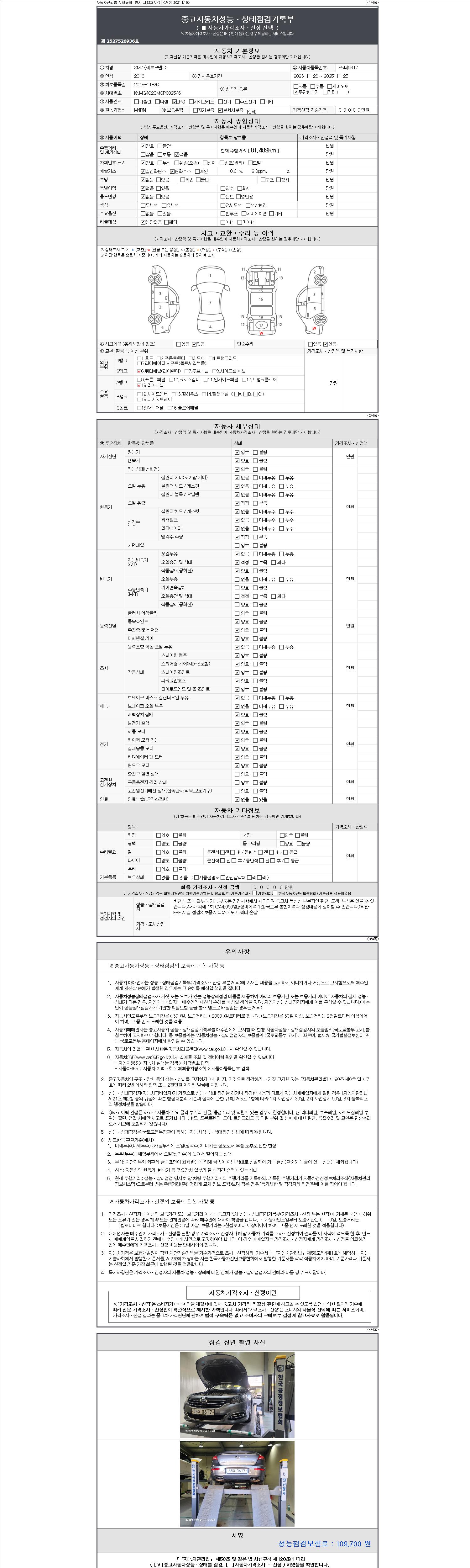 2. 차량 등록증이나 성능점검지 등을 상담자에게 요청및 확인하시고 사전에 미리 점검 하시기를 권유드립니다.