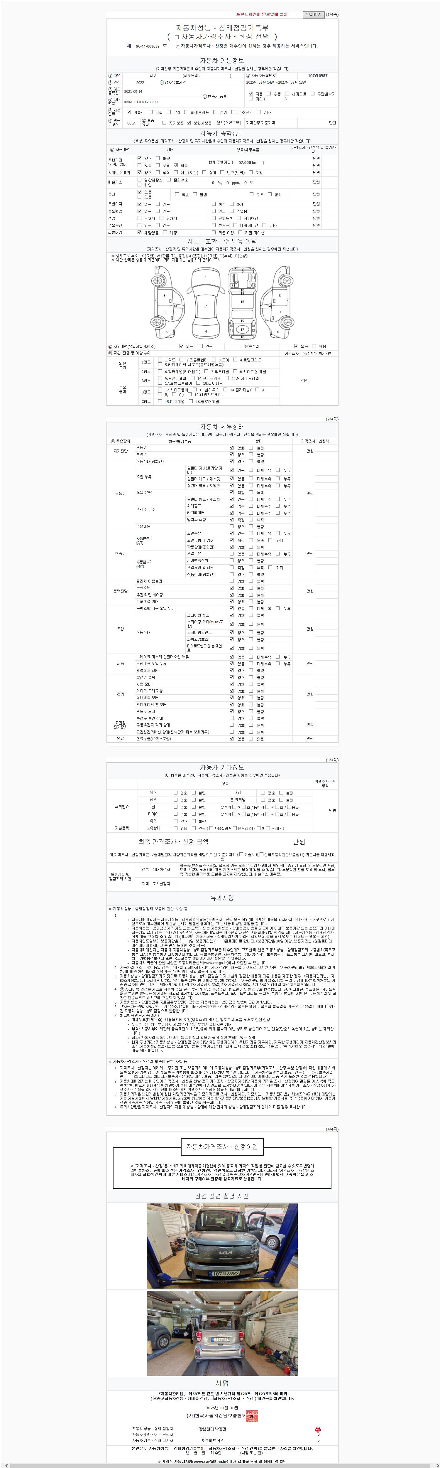 사고유무 성능기록부 참조 제시번호 제 2025152044 호