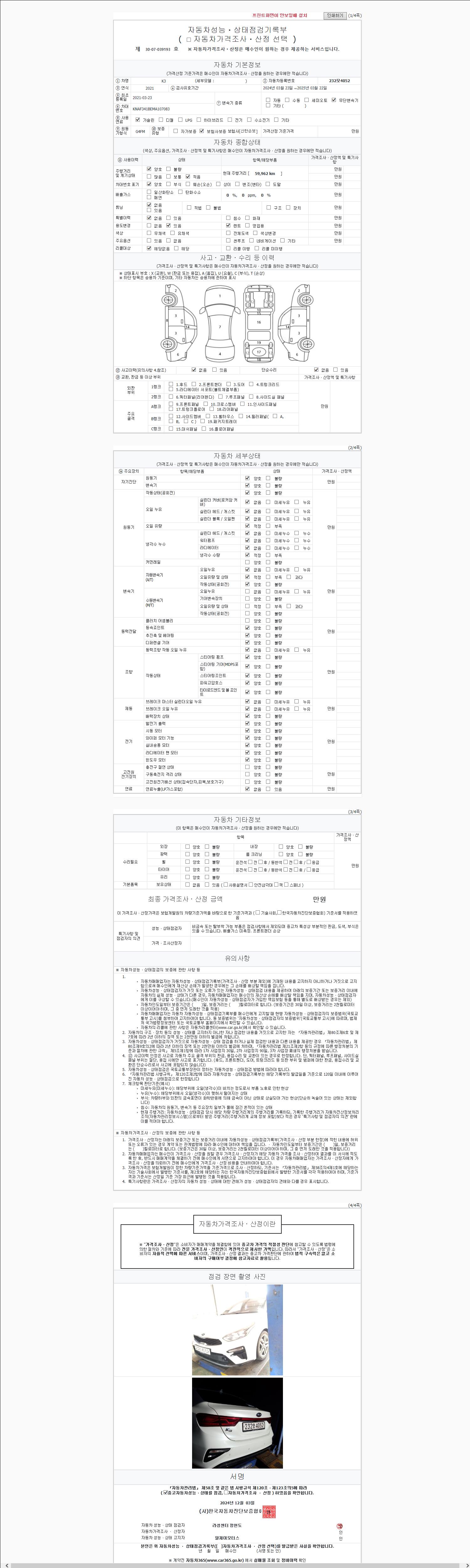 2. 차량 등록증이나 성능점검지 등을 상담자에게 요청및 확인하시고 사전에 미리 점검 하시기를 권유드립니다.