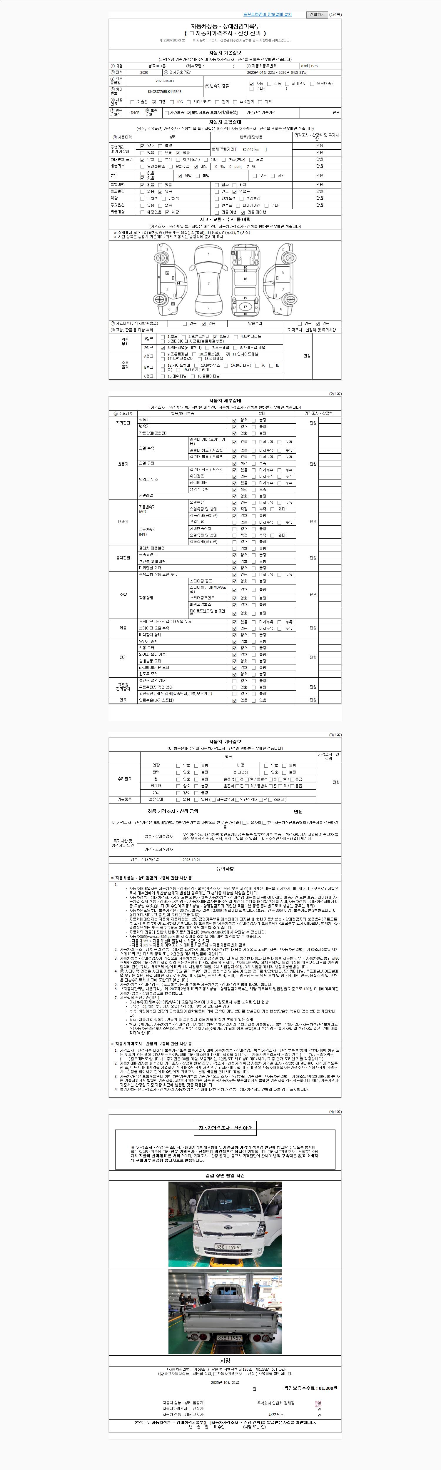 | 주행거리 | 85,445 km | 차량번호 | 838나1959 |
