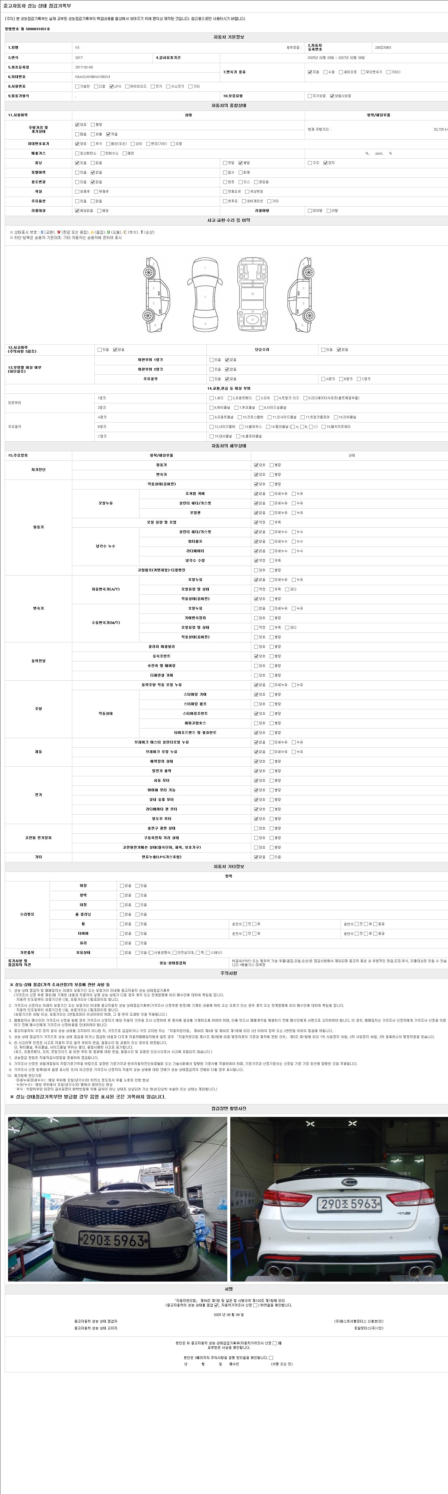 2. 차량 등록증이나 성능점검지 등을 상담자에게 요청및 확인하시고 사전에 미리 점검 하시기를 권유드립니다.
