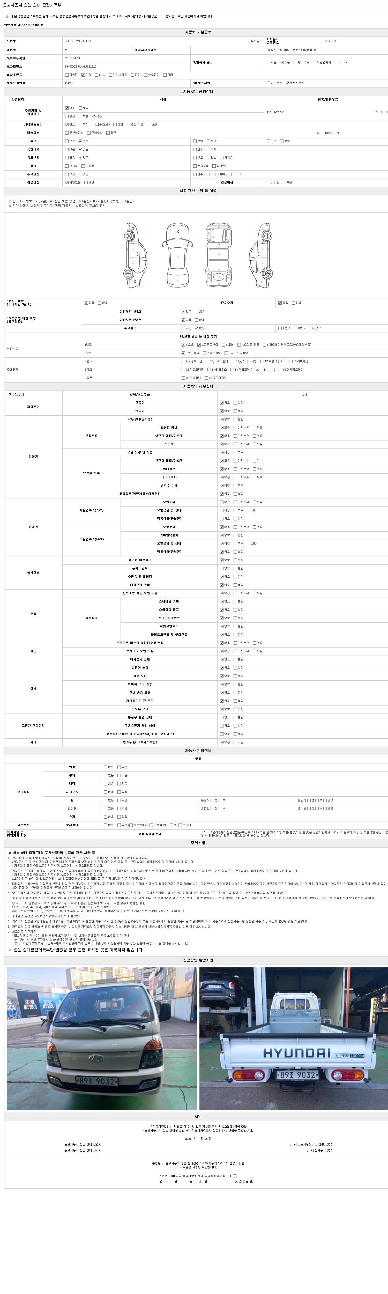 2. 차량 등록증이나 성능점검지 등을 상담자에게 요청및 확인하시고 사전에 미리 점검 하시기를 권유드립니다.