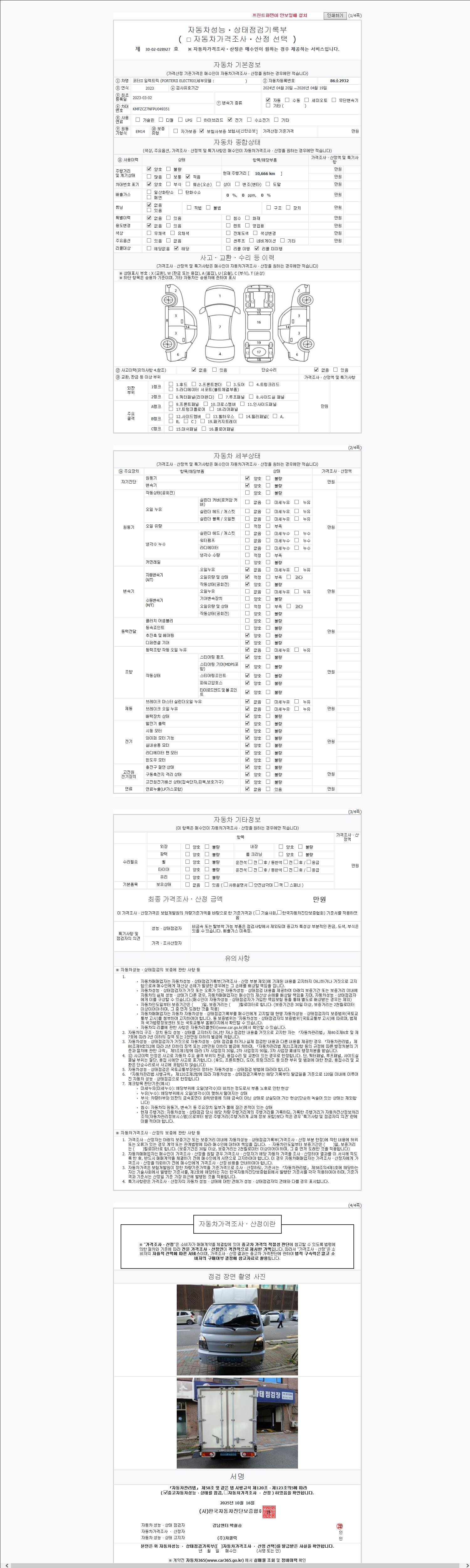 | 사고유무 | 성능기록부 참조 | 제시번호 | 제 2025127265 호 |