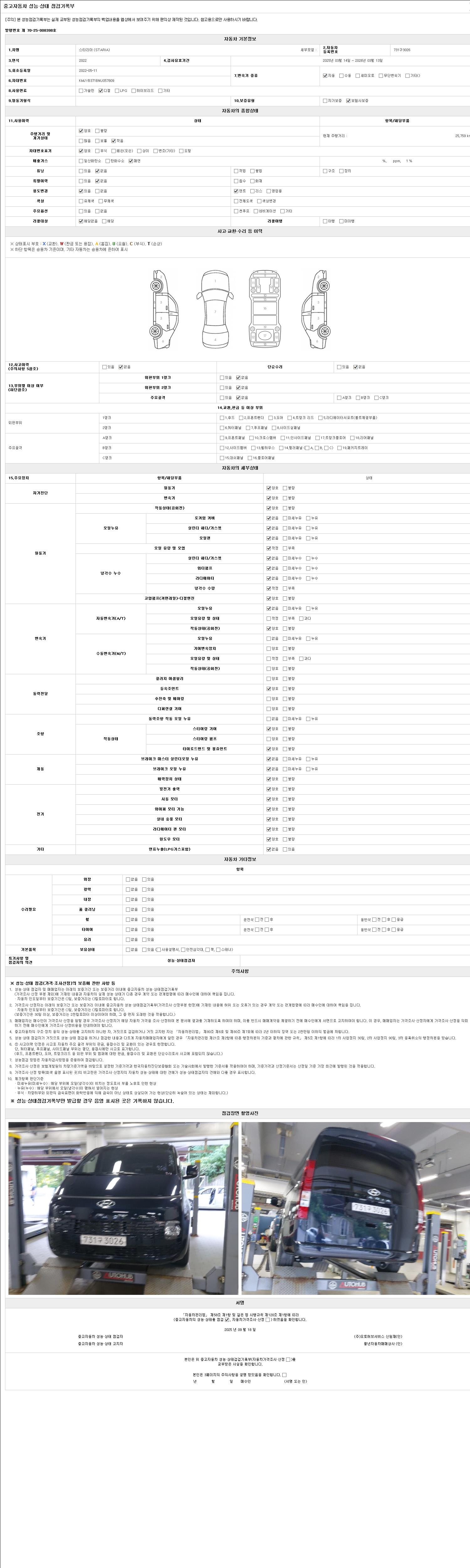 2. 차량 등록증이나 성능점검지 등을 상담자에게 요청및 확인하시고 사전에 미리 점검 하시기를 권유드립니다.