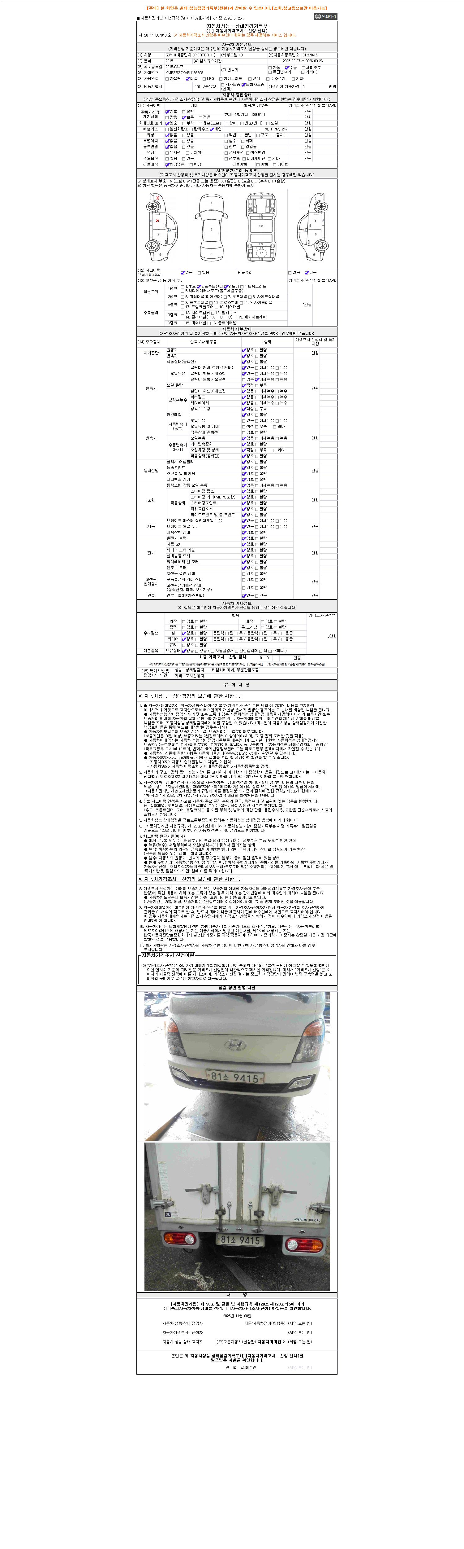 2. 차량 등록증이나 성능점검지 등을 상담자에게 요청및 확인하시고 사전에 미리 점검 하시기를 권유드립니다.