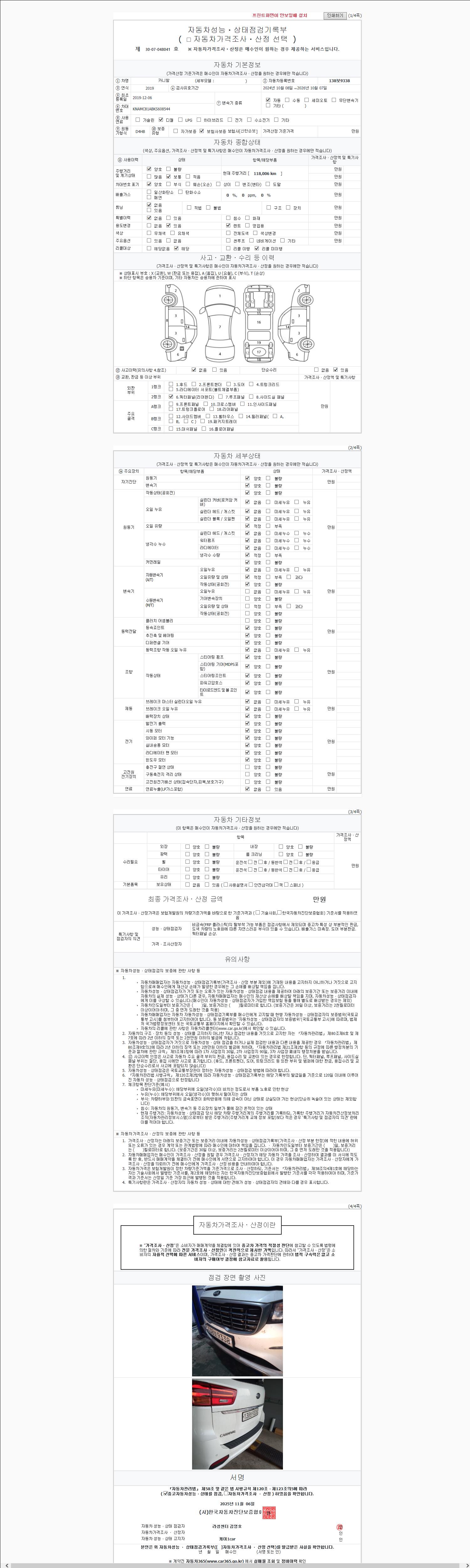 2. 차량 등록증이나 성능점검지 등을 상담자에게 요청및 확인하시고 사전에 미리 점검 하시기를 권유드립니다.