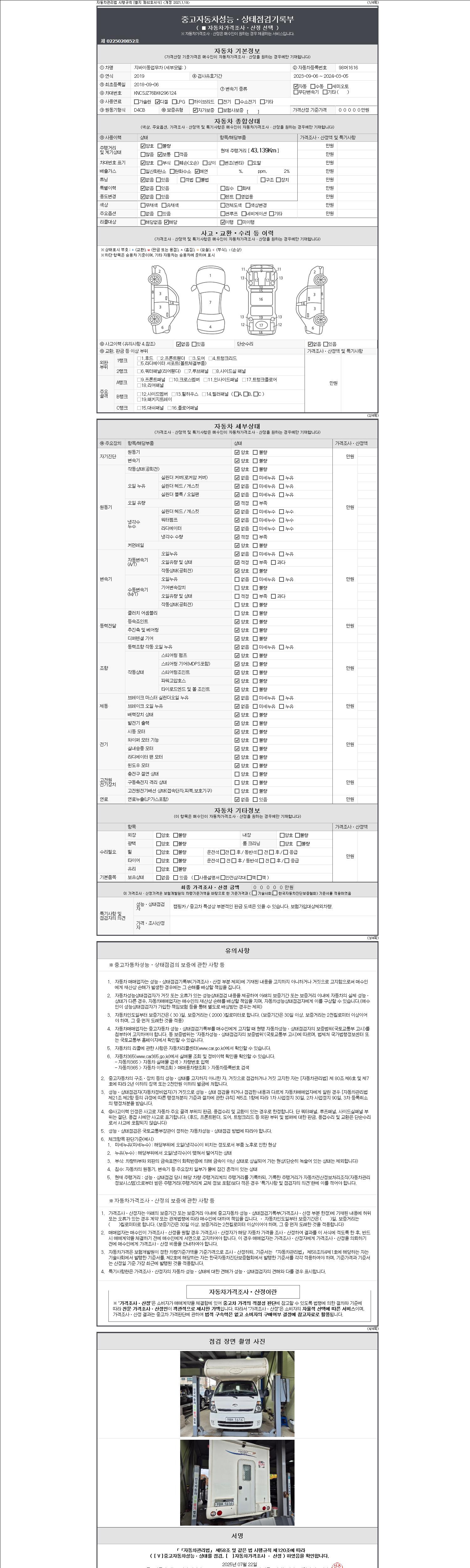2. 차량 등록증이나 성능점검지 등을 상담자에게 요청및 확인하시고 사전에 미리 점검 하시기를 권유드립니다.
