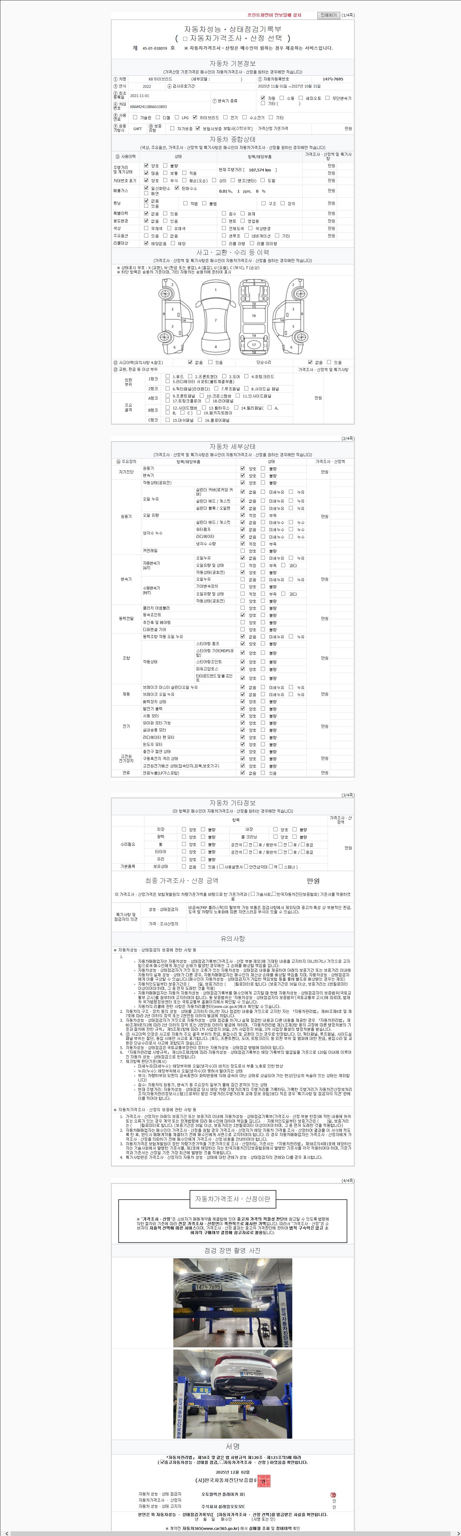 | 주행거리 | 107,574 km | 차량번호 | 147누7695 |