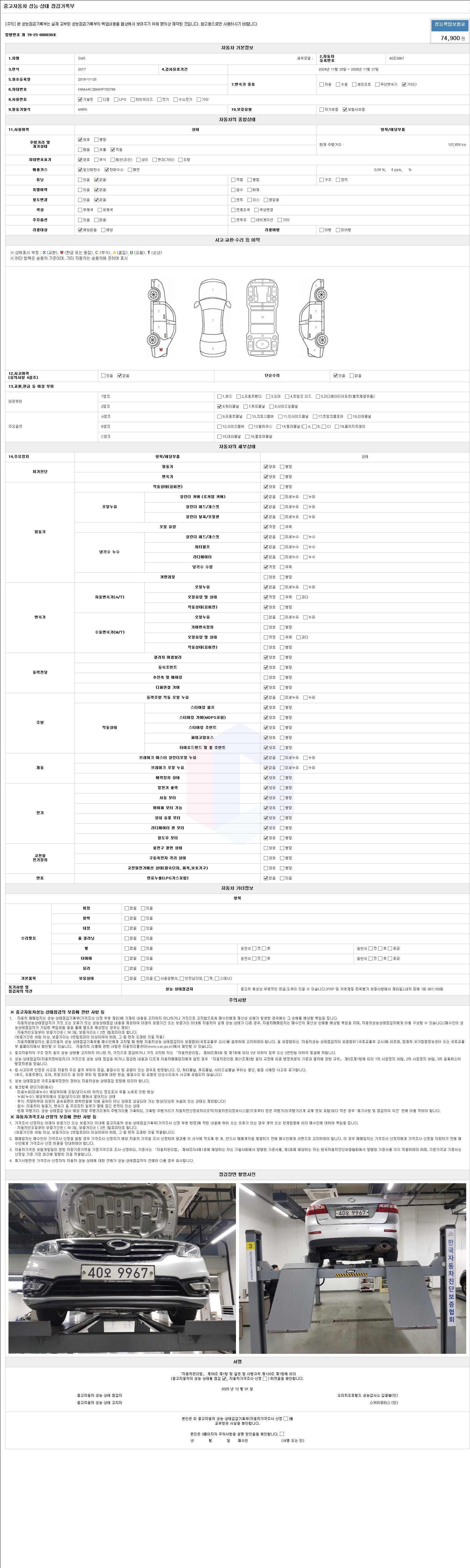 2. 차량 등록증이나 성능점검지 등을 상담자에게 요청및 확인하시고 사전에 미리 점검 하시기를 권유드립니다.
