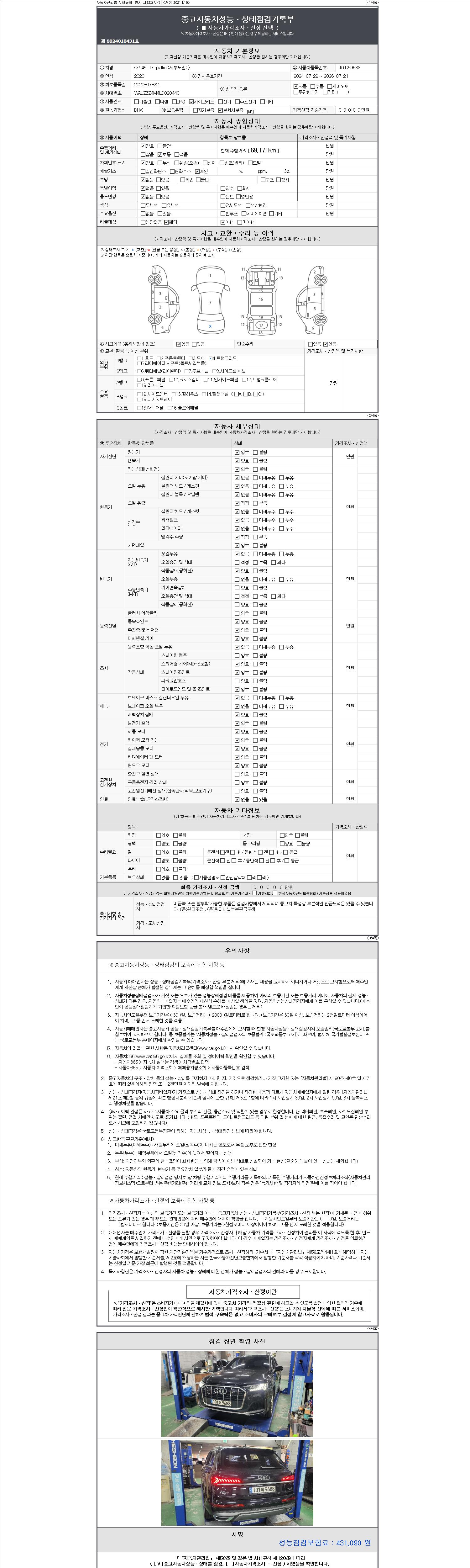 2. 차량 등록증이나 성능점검지 등을 상담자에게 요청및 확인하시고 사전에 미리 점검 하시기를 권유드립니다.