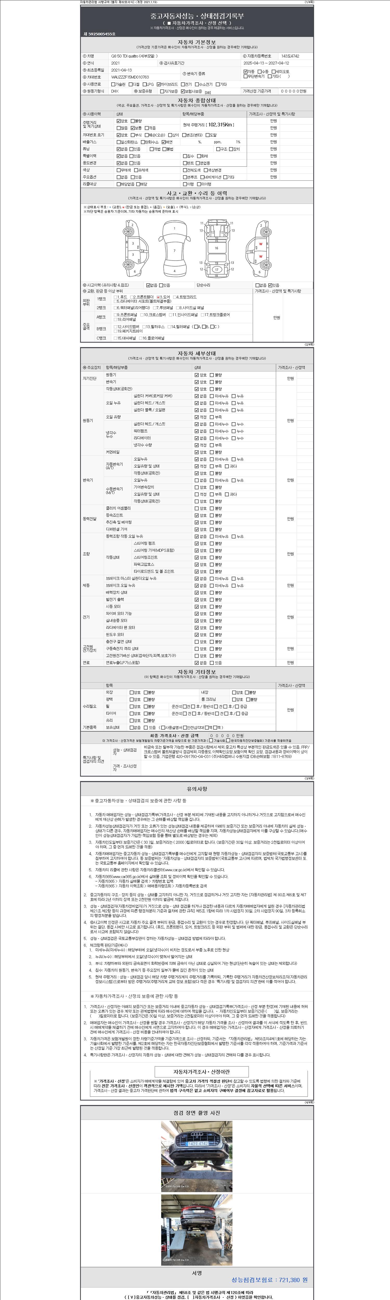 2. 차량 등록증이나 성능점검지 등을 상담자에게 요청및 확인하시고 사전에 미리 점검 하시기를 권유드립니다.