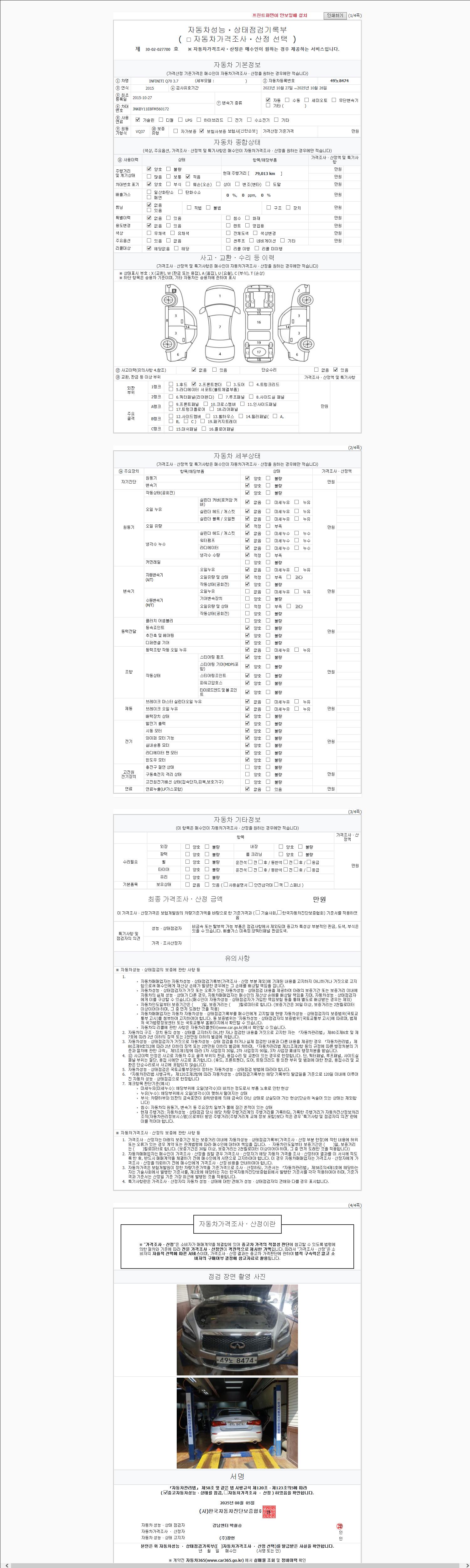 2. 차량 등록증이나 성능점검지 등을 상담자에게 요청및 확인하시고 사전에 미리 점검 하시기를 권유드립니다.