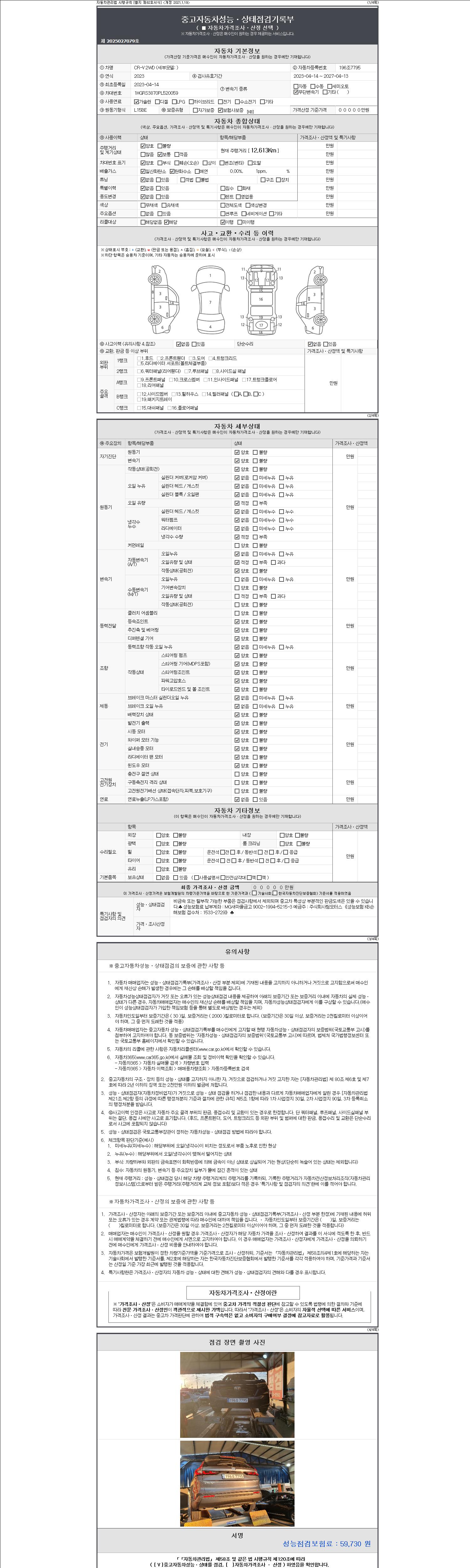 2. 차량 등록증이나 성능점검지 등을 상담자에게 요청및 확인하시고 사전에 미리 점검 하시기를 권유드립니다.