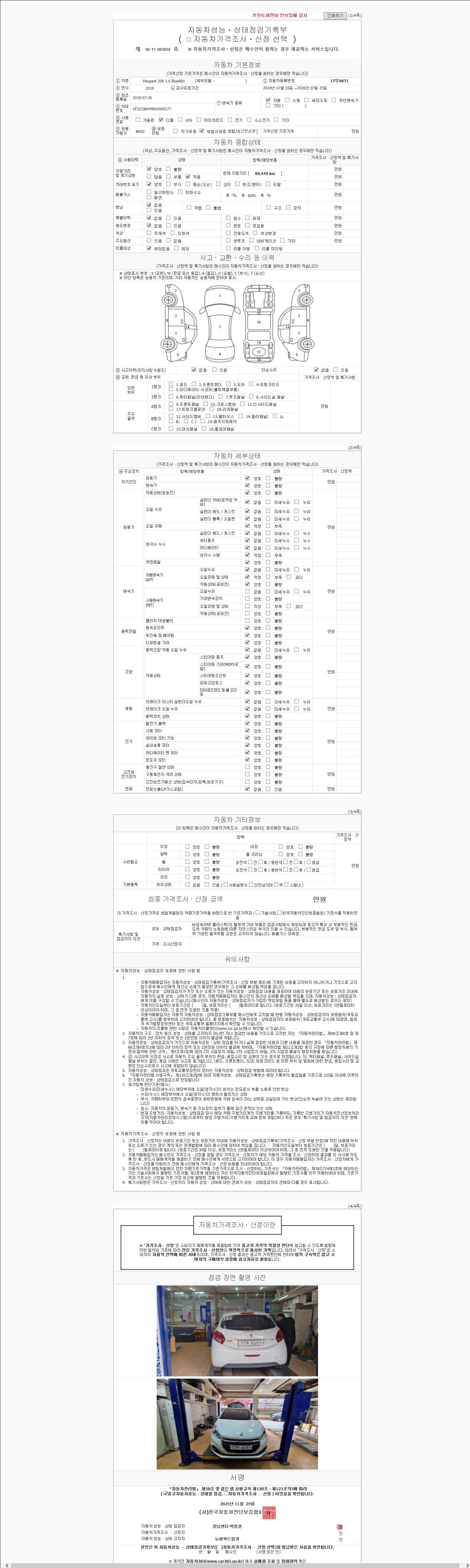 사고유무 성능기록부 참조 제시번호 제 2147483647 호