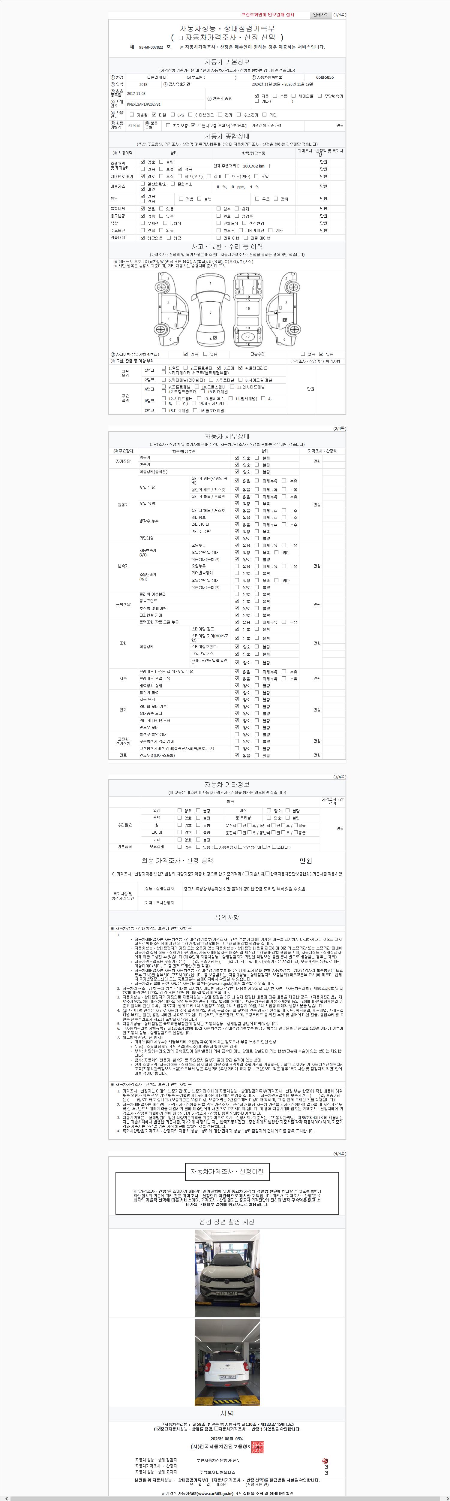 2. 차량 등록증이나 성능점검지 등을 상담자에게 요청및 확인하시고 사전에 미리 점검 하시기를 권유드립니다.