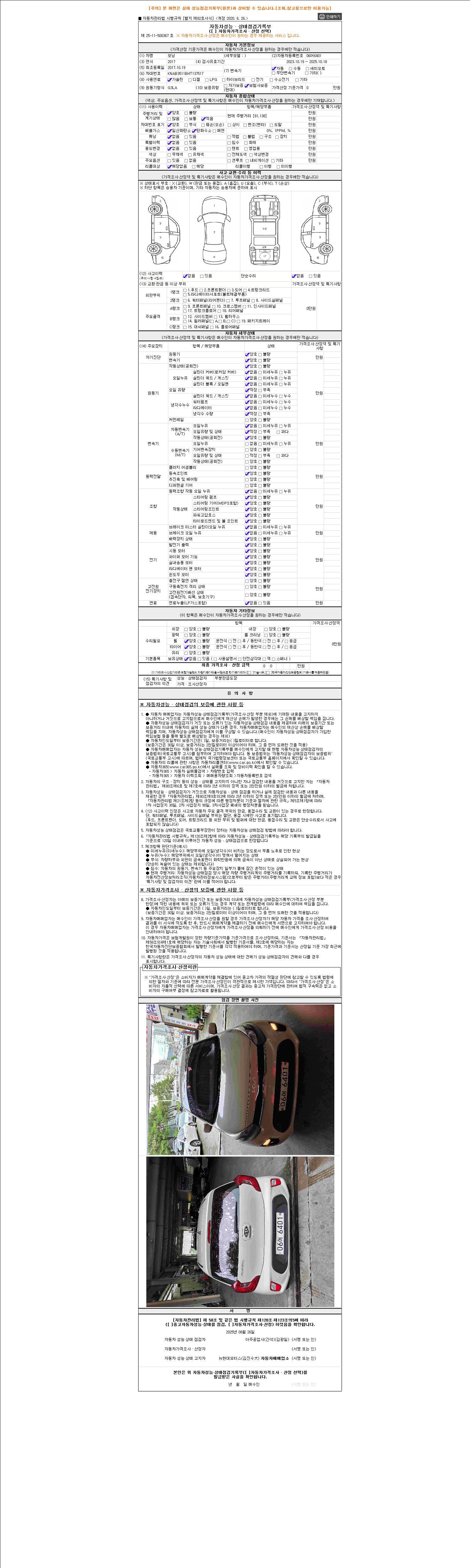 2. 차량 등록증이나 성능점검지 등을 상담자에게 요청및 확인하시고 사전에 미리 점검 하시기를 권유드립니다.