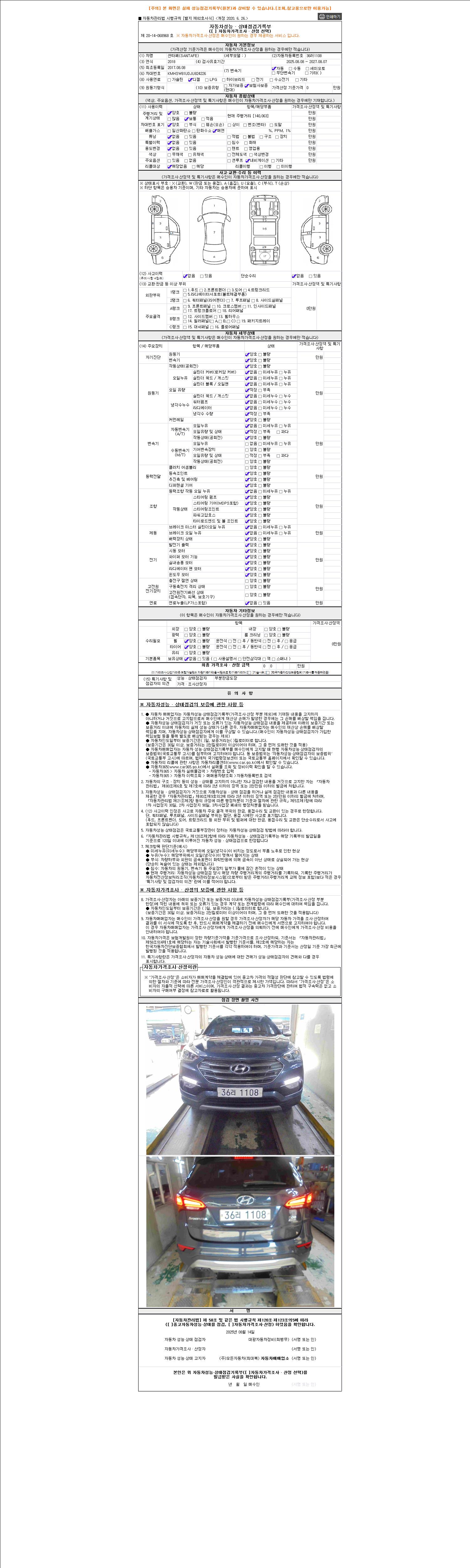 2. 차량 등록증이나 성능점검지 등을 상담자에게 요청및 확인하시고 사전에 미리 점검 하시기를 권유드립니다.