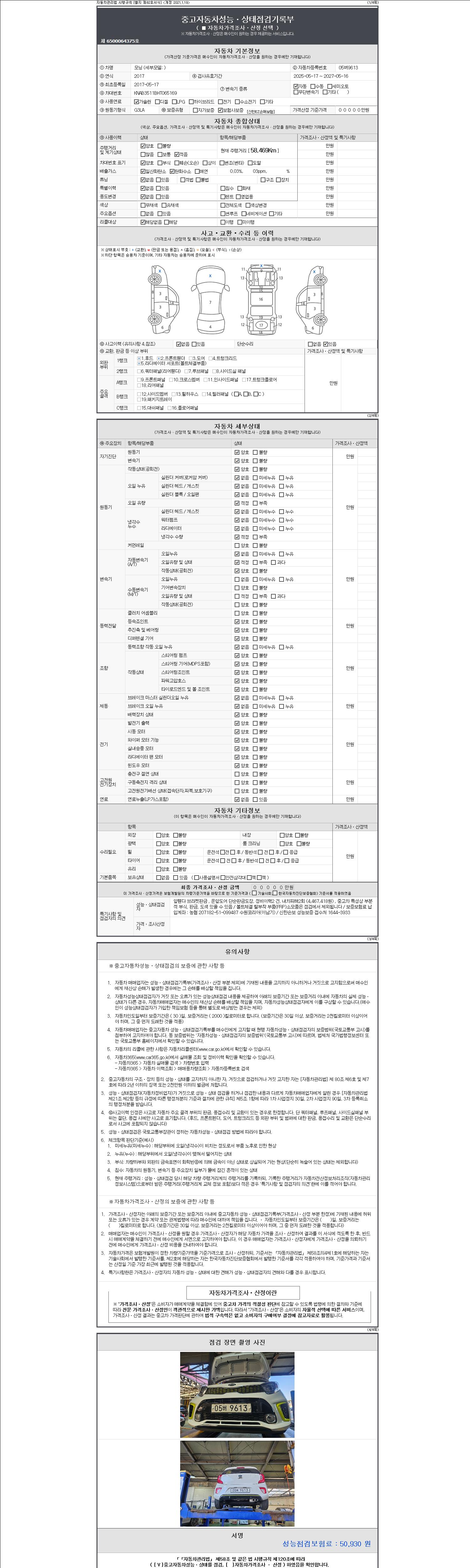 2. 차량 등록증이나 성능점검지 등을 상담자에게 요청및 확인하시고 사전에 미리 점검 하시기를 권유드립니다.