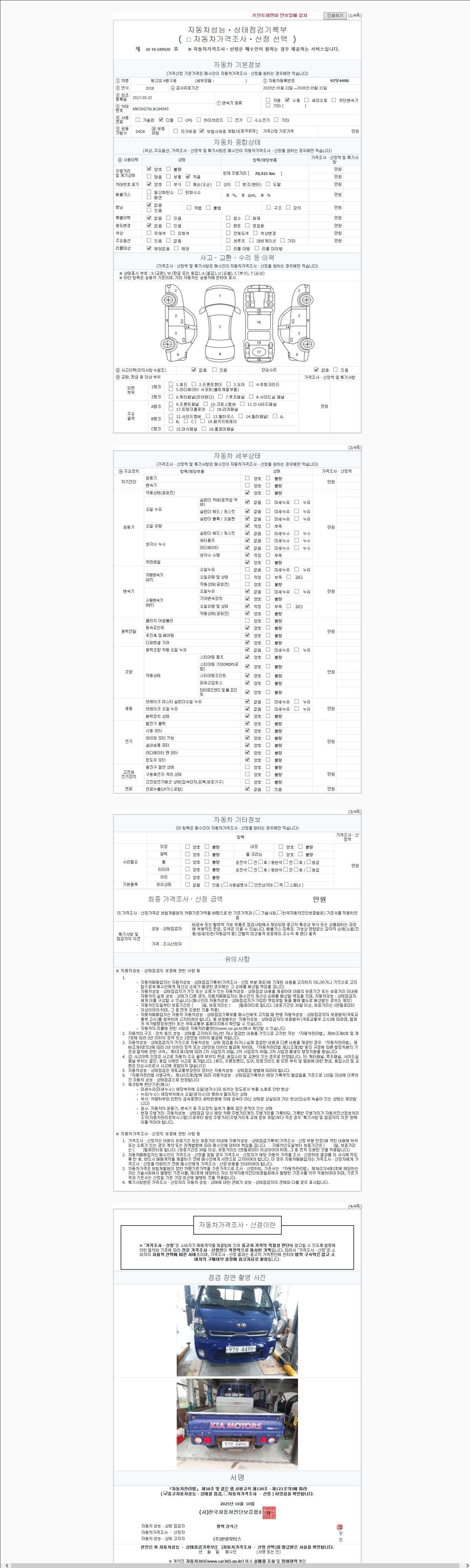 2. 차량 등록증이나 성능점검지 등을 상담자에게 요청및 확인하시고 사전에 미리 점검 하시기를 권유드립니다.