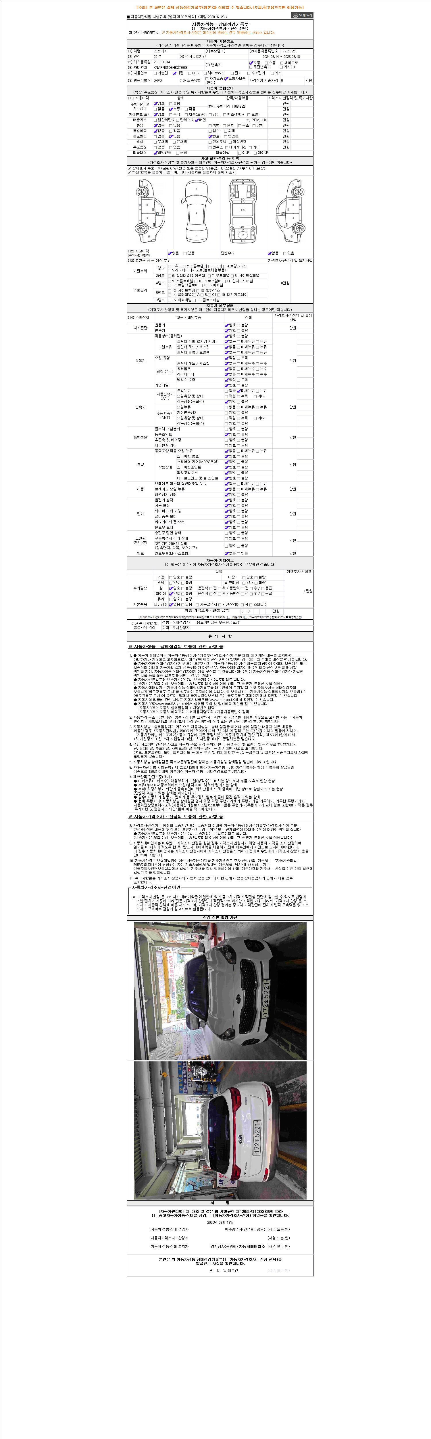 2. 차량 등록증이나 성능점검지 등을 상담자에게 요청및 확인하시고 사전에 미리 점검 하시기를 권유드립니다.