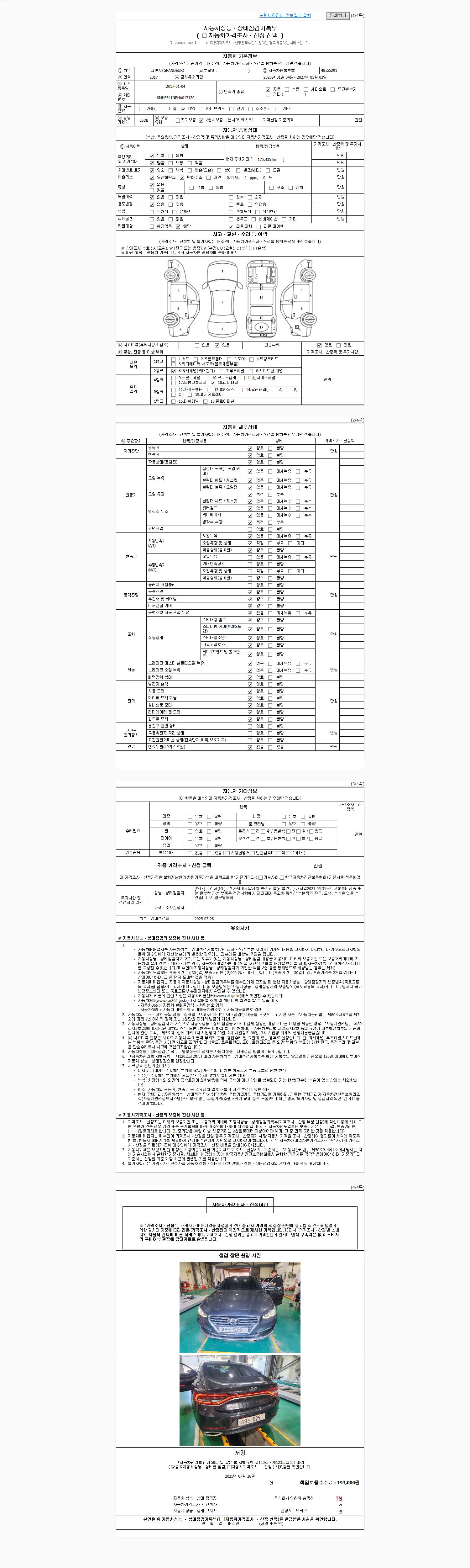 | 사고유무 | 성능기록부 참조 | 제시번호 | 제 2025017675 호 |