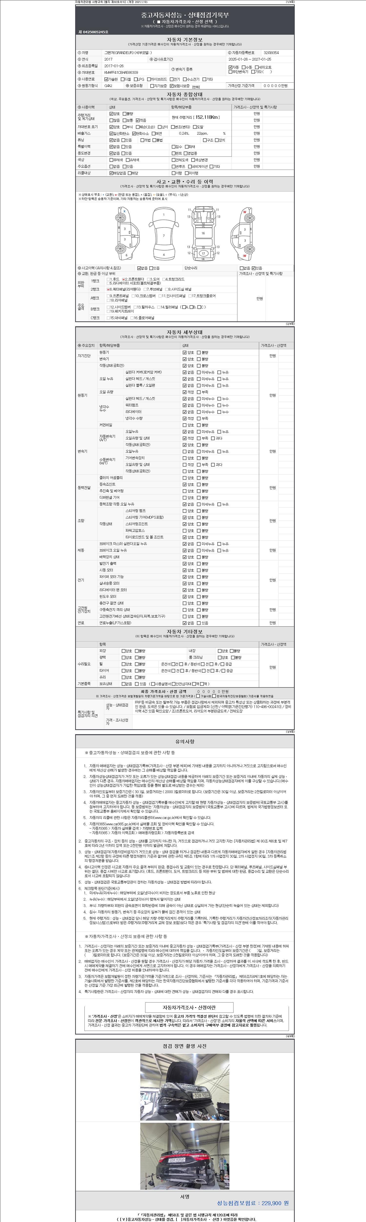 2. 차량 등록증이나 성능점검지 등을 상담자에게 요청및 확인하시고 사전에 미리 점검 하시기를 권유드립니다.