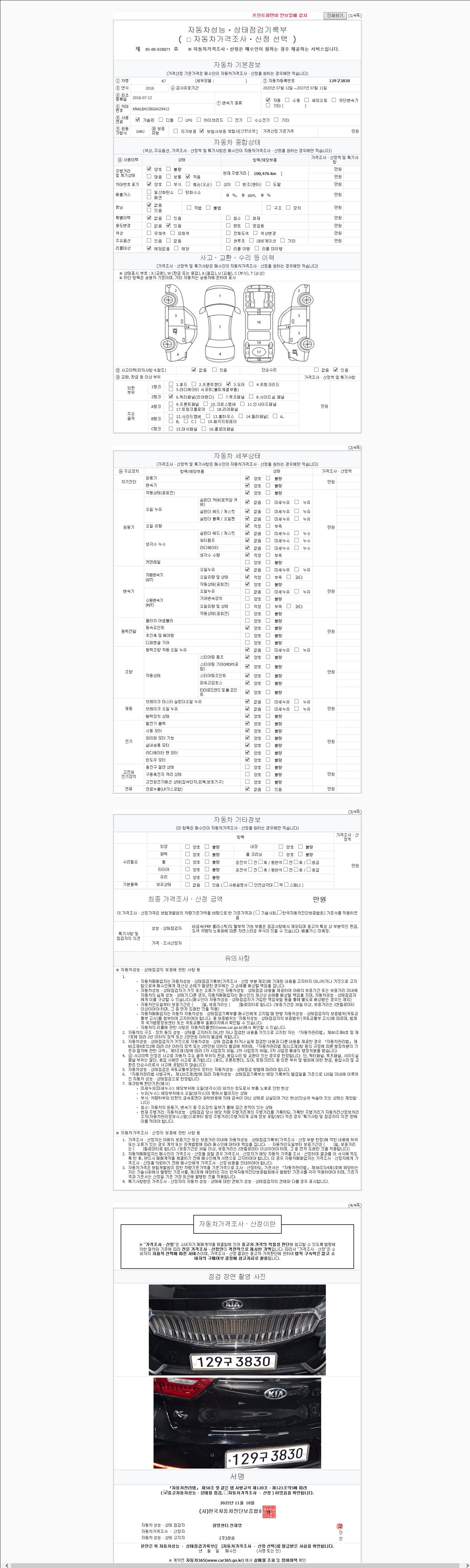 2. 차량 등록증이나 성능점검지 등을 상담자에게 요청및 확인하시고 사전에 미리 점검 하시기를 권유드립니다.