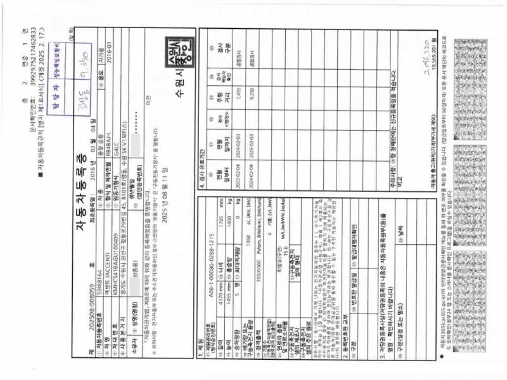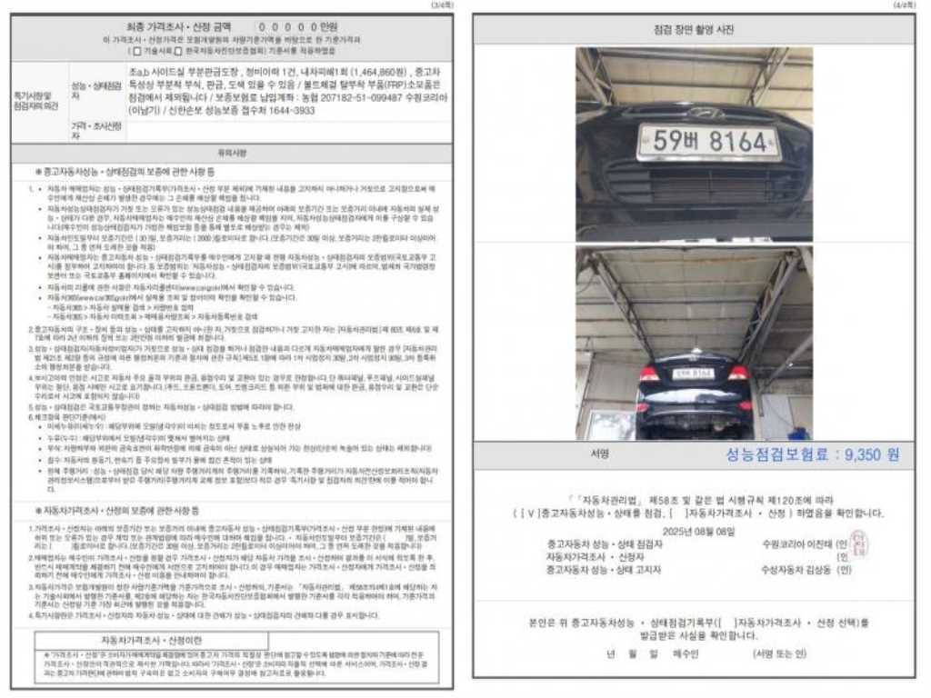 2. 차량 등록증이나 성능점검지 등을 상담자에게 요청및 확인하시고 사전에 미리 점검 하시기를 권유드립니다.
