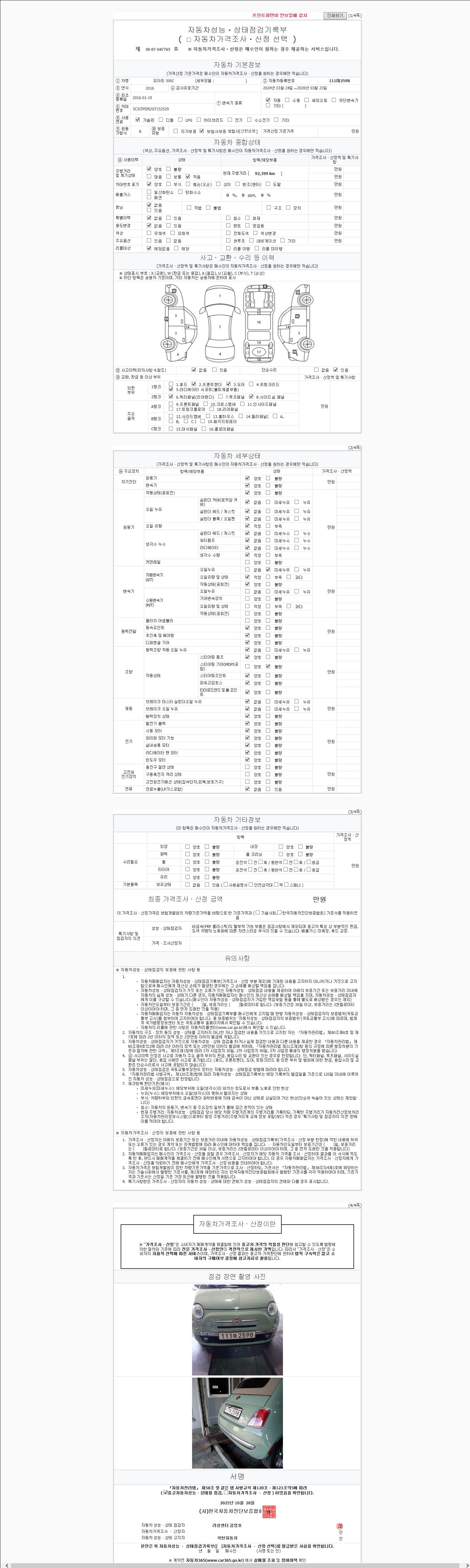 2. 차량 등록증이나 성능점검지 등을 상담자에게 요청및 확인하시고 사전에 미리 점검 하시기를 권유드립니다.