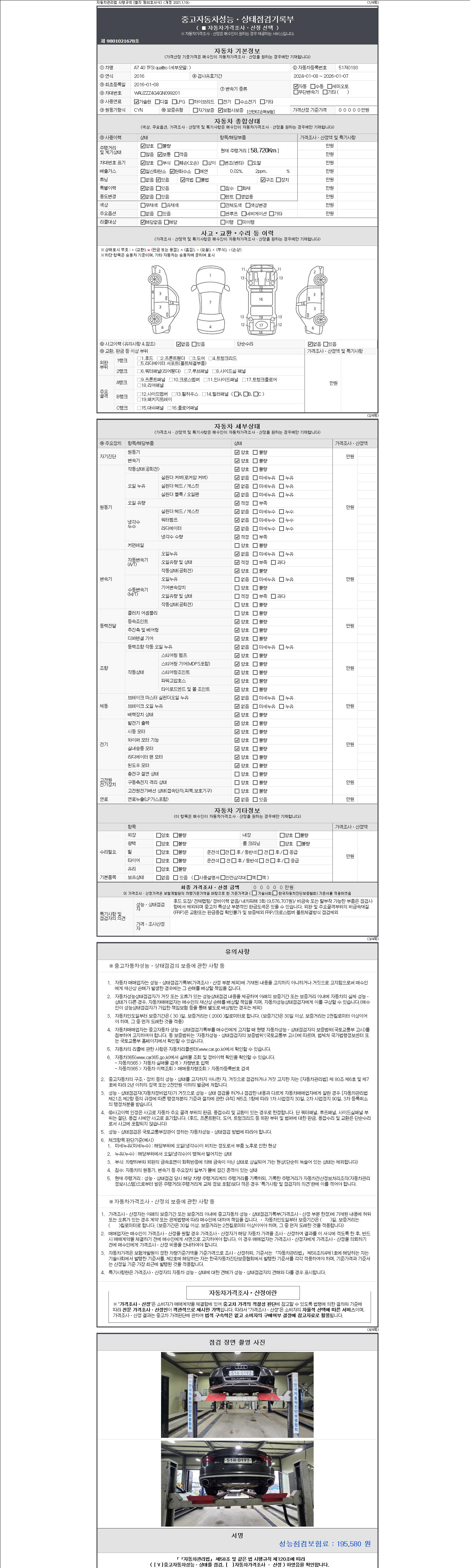 2. 차량 등록증이나 성능점검지 등을 상담자에게 요청및 확인하시고 사전에 미리 점검 하시기를 권유드립니다.