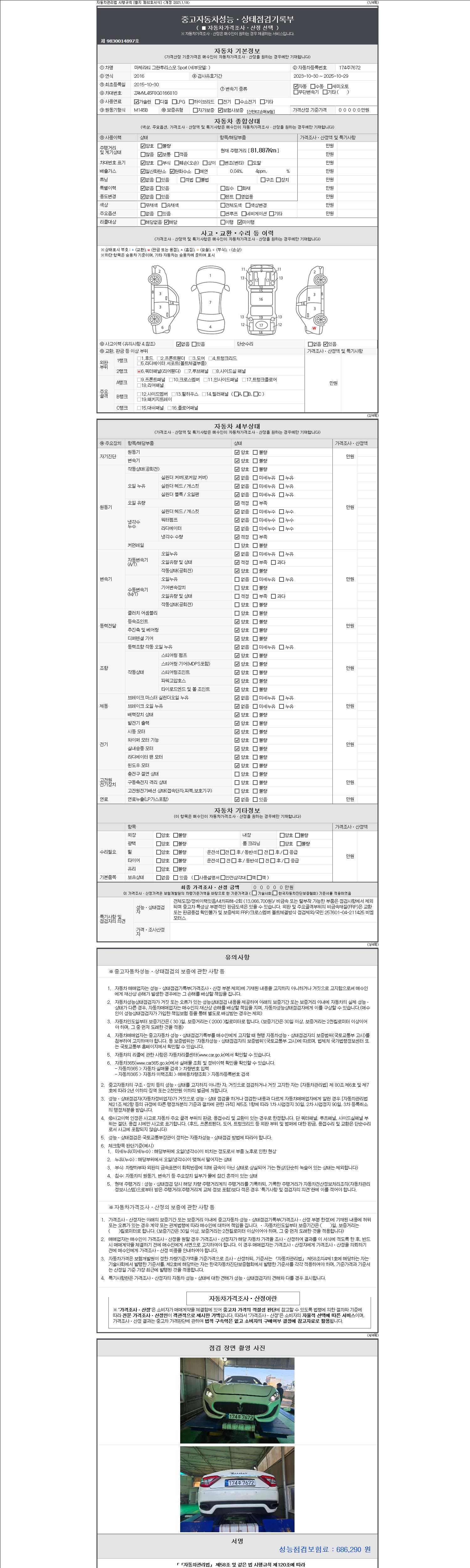2. 차량 등록증이나 성능점검지 등을 상담자에게 요청및 확인하시고 사전에 미리 점검 하시기를 권유드립니다.