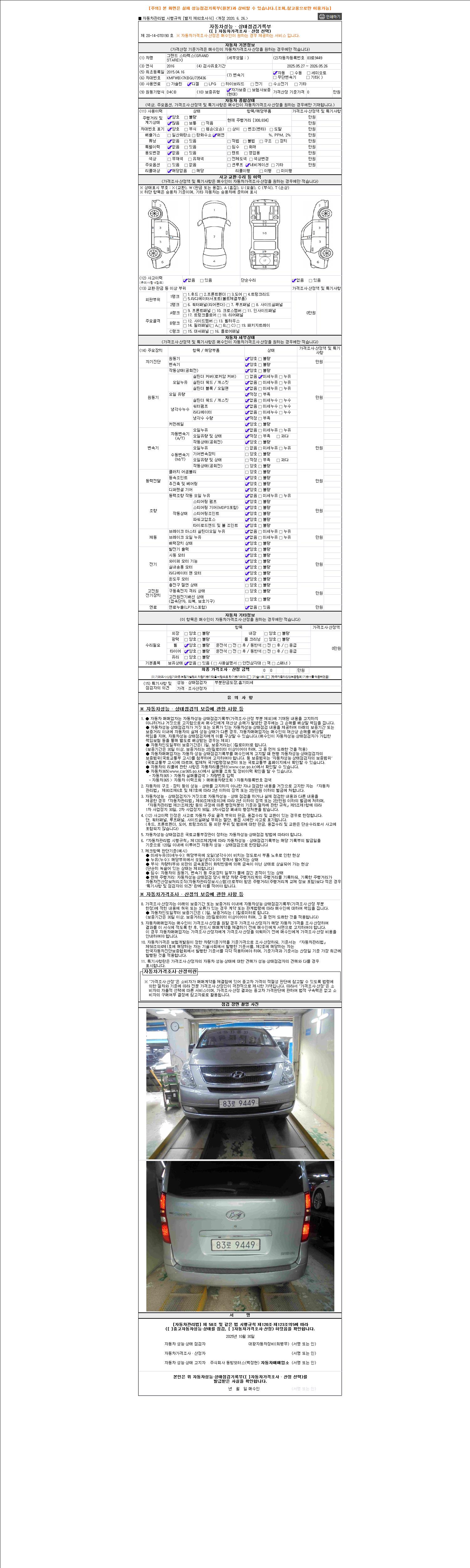 2. 차량 등록증이나 성능점검지 등을 상담자에게 요청및 확인하시고 사전에 미리 점검 하시기를 권유드립니다.