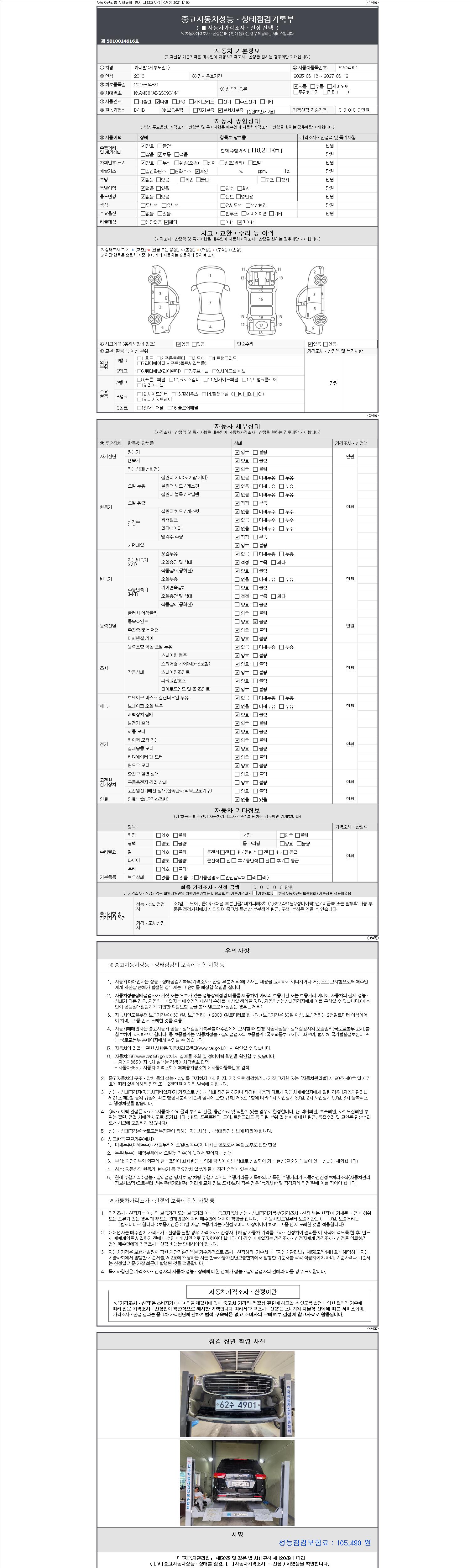 | 주행거리 | 118,191 km | 차량번호 | 62수4901 |