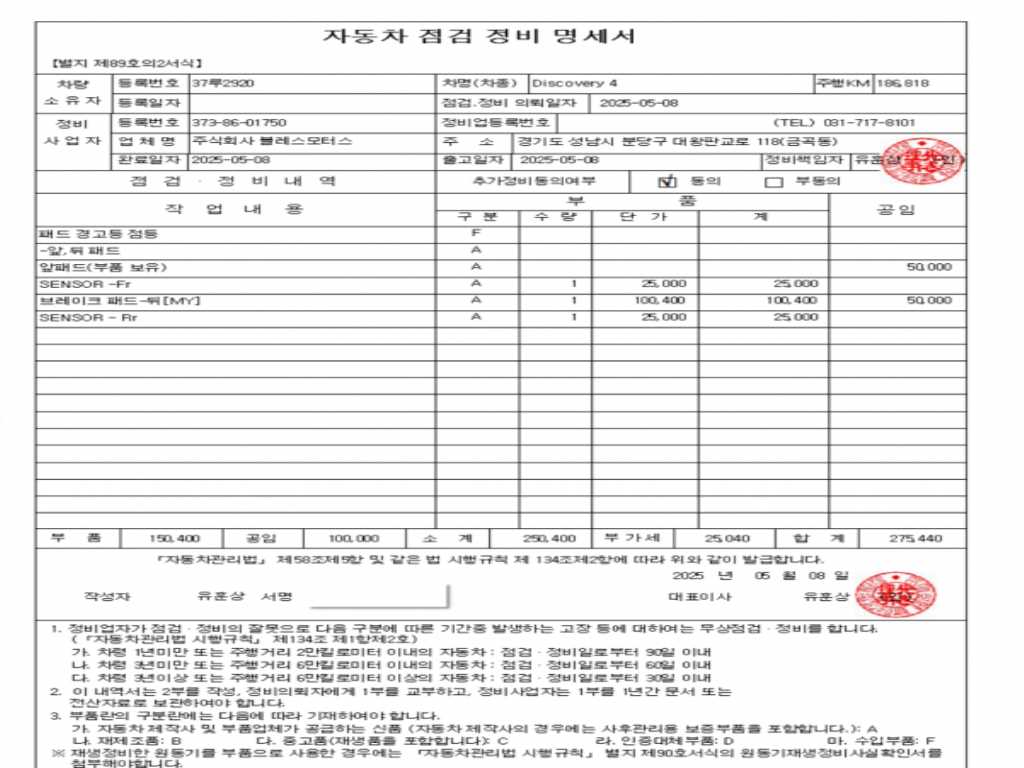 2. 차량 등록증이나 성능점검지 등을 상담자에게 요청및 확인하시고 사전에 미리 점검 하시기를 권유드립니다.