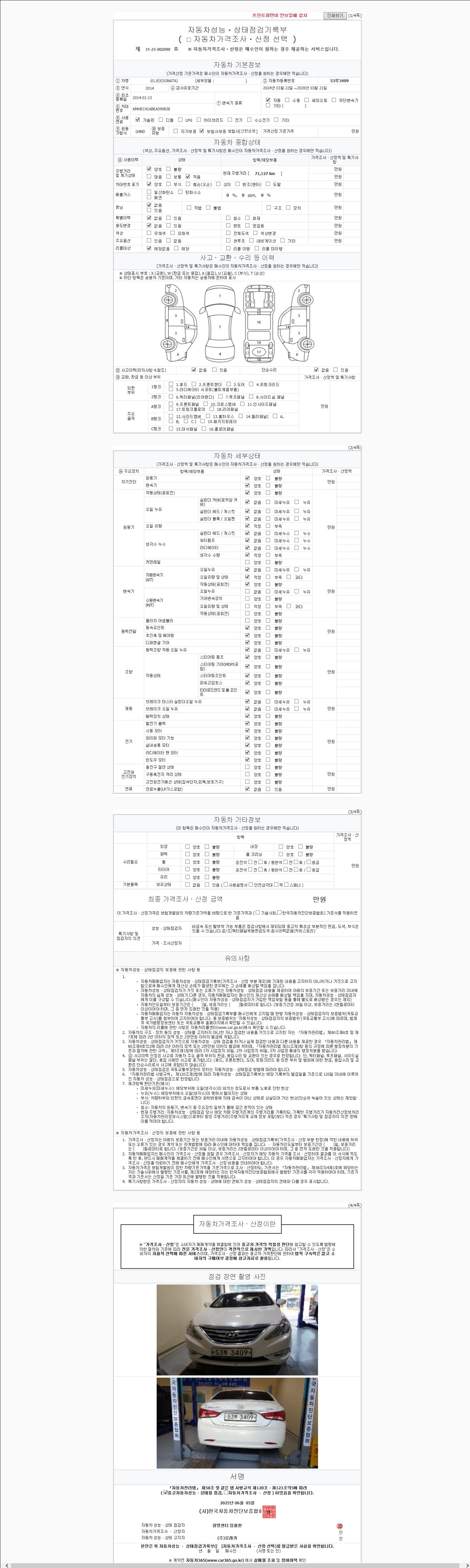 2. 차량 등록증이나 성능점검지 등을 상담자에게 요청및 확인하시고 사전에 미리 점검 하시기를 권유드립니다.