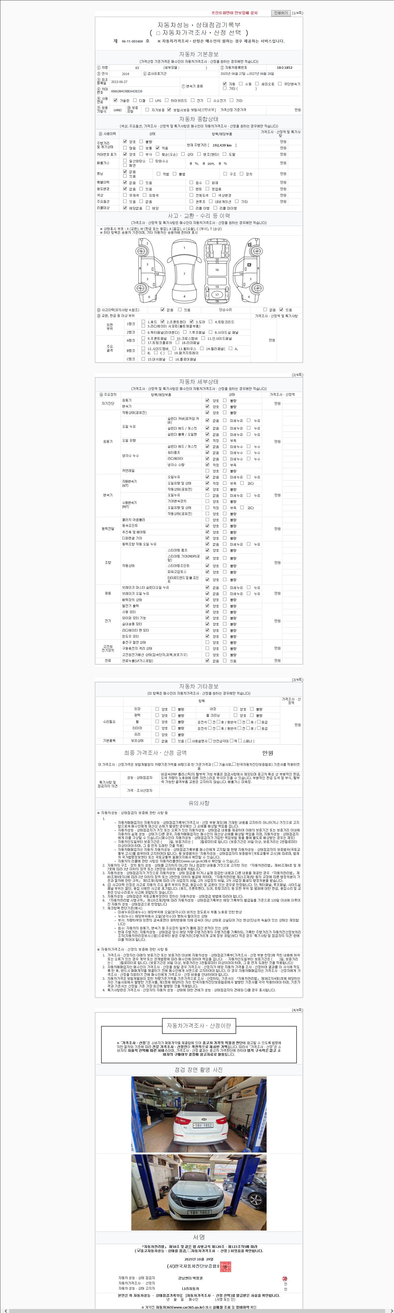 2. 차량 등록증이나 성능점검지 등을 상담자에게 요청및 확인하시고 사전에 미리 점검 하시기를 권유드립니다.