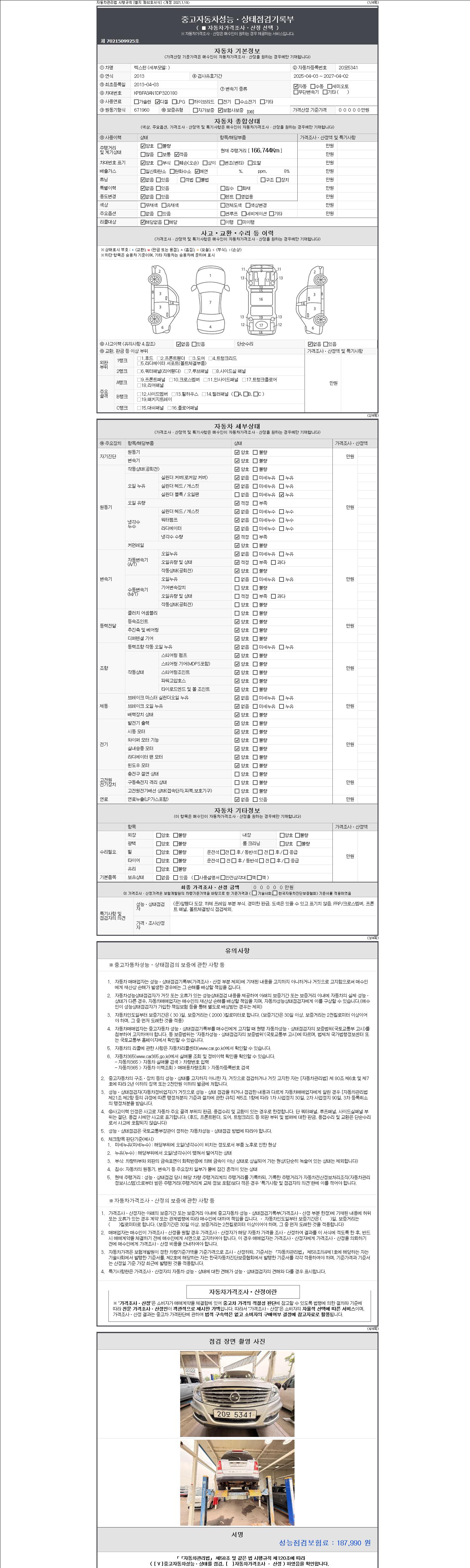 2. 차량 등록증이나 성능점검지 등을 상담자에게 요청및 확인하시고 사전에 미리 점검 하시기를 권유드립니다.