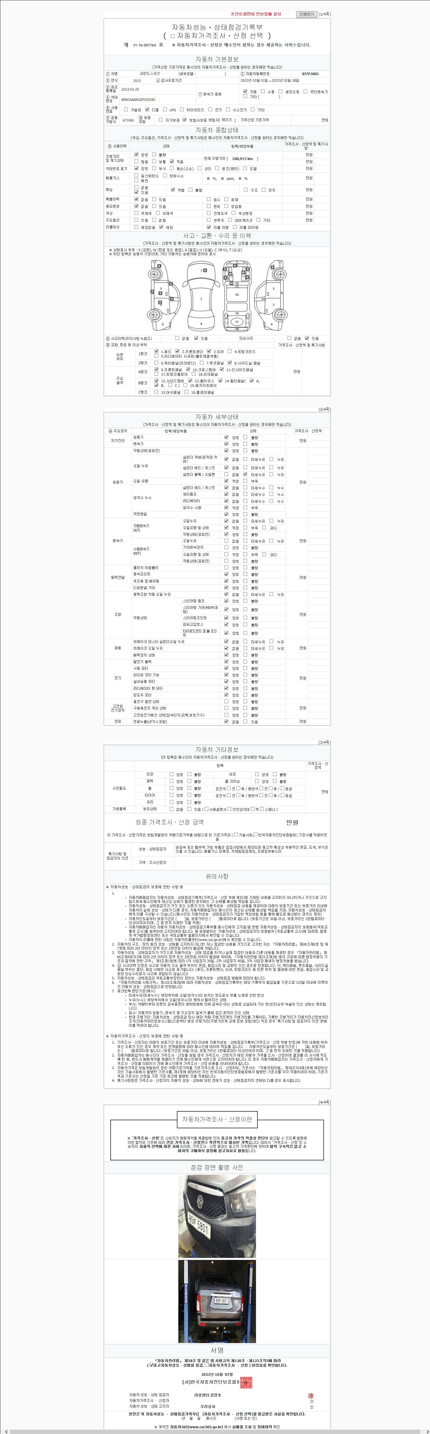 2. 차량 등록증이나 성능점검지 등을 상담자에게 요청및 확인하시고 사전에 미리 점검 하시기를 권유드립니다.