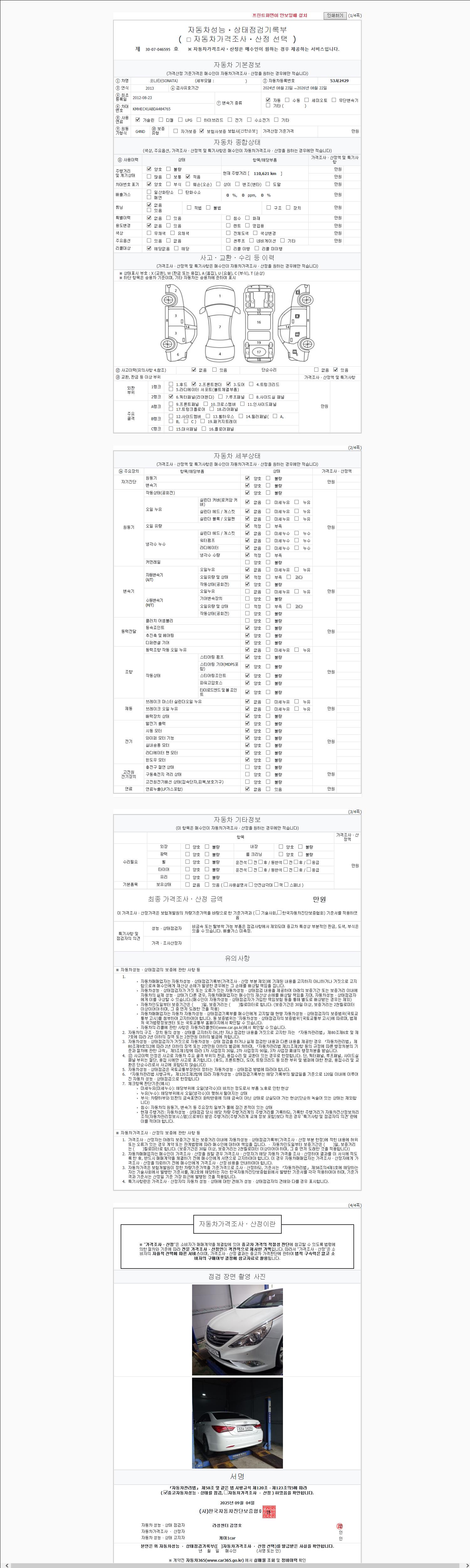 2. 차량 등록증이나 성능점검지 등을 상담자에게 요청및 확인하시고 사전에 미리 점검 하시기를 권유드립니다.