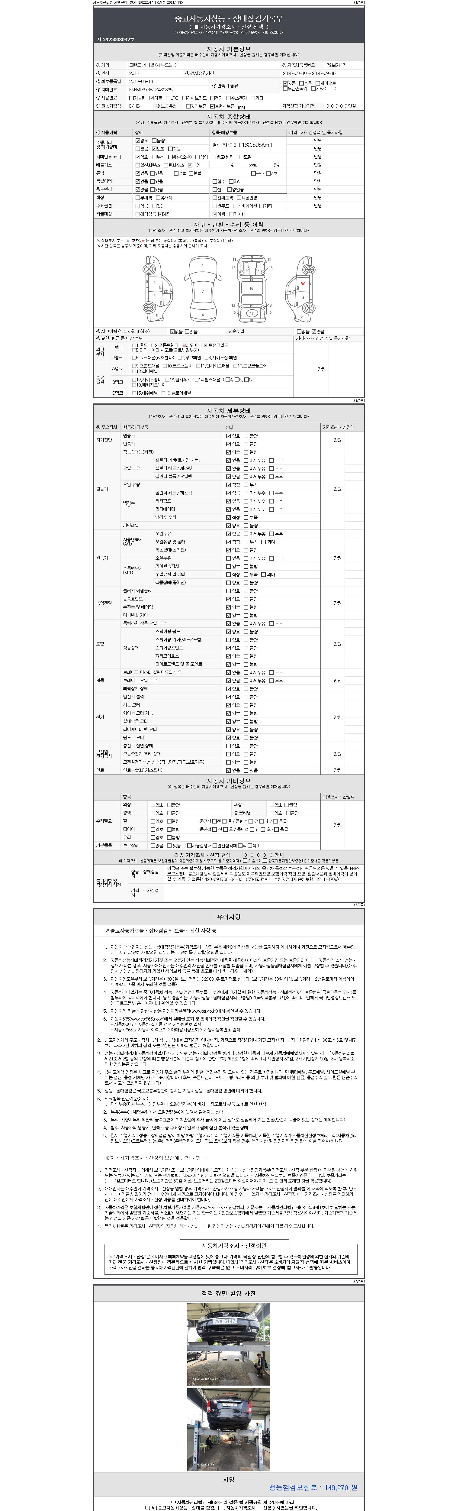 2. 차량 등록증이나 성능점검지 등을 상담자에게 요청및 확인하시고 사전에 미리 점검 하시기를 권유드립니다.
