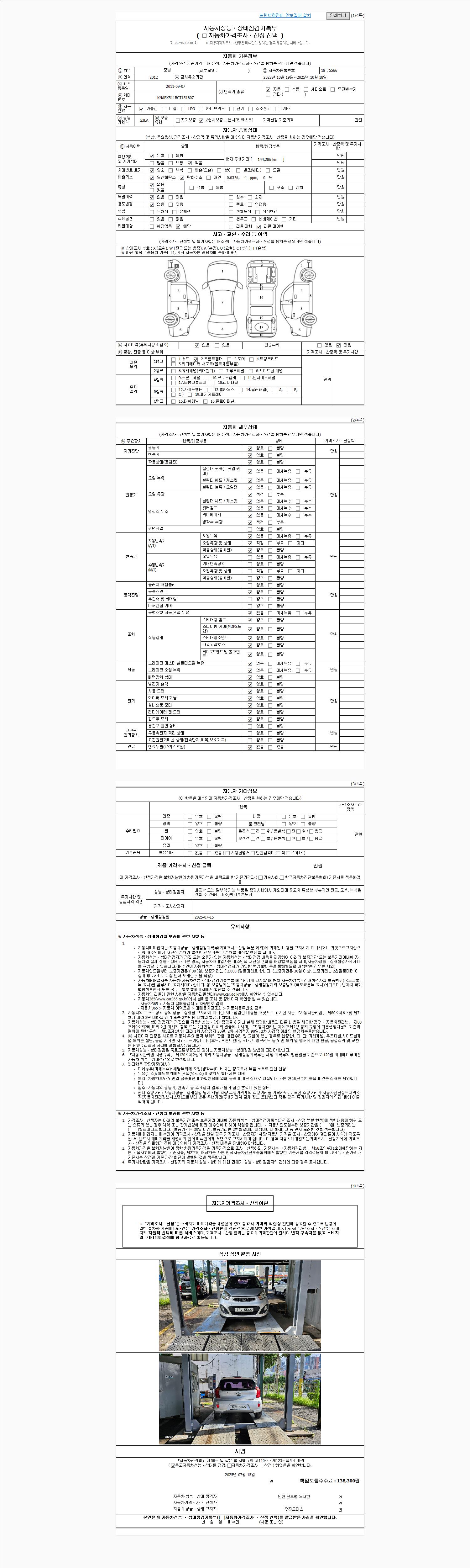 2. 차량 등록증이나 성능점검지 등을 상담자에게 요청및 확인하시고 사전에 미리 점검 하시기를 권유드립니다.
