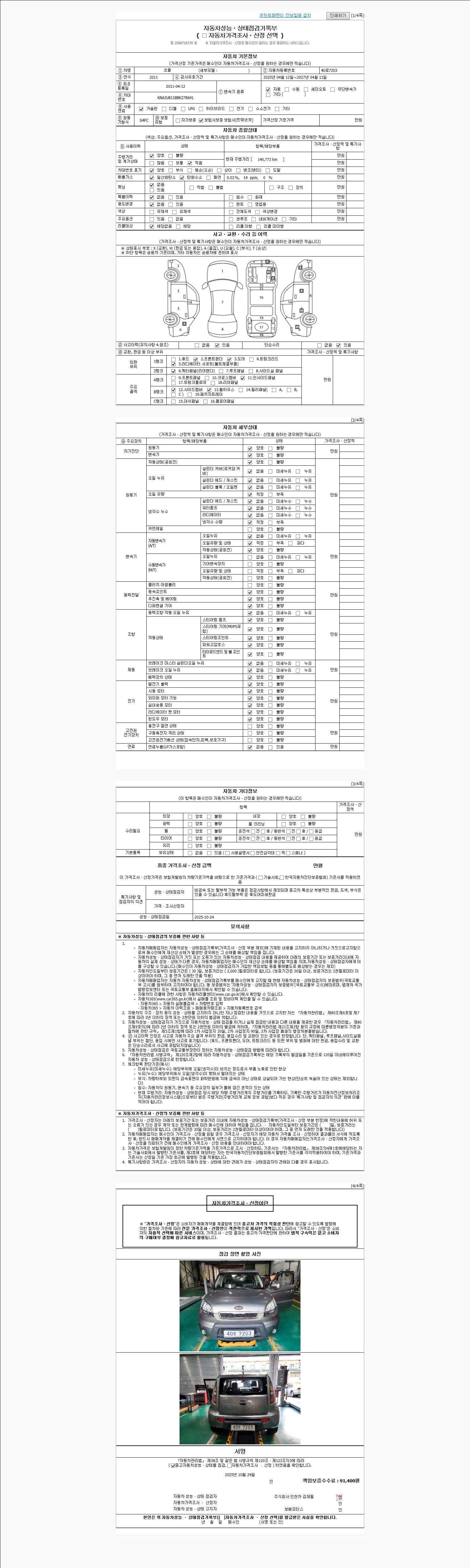 | 주행거리 | 140,773 km | 차량번호 | 40로7203 |