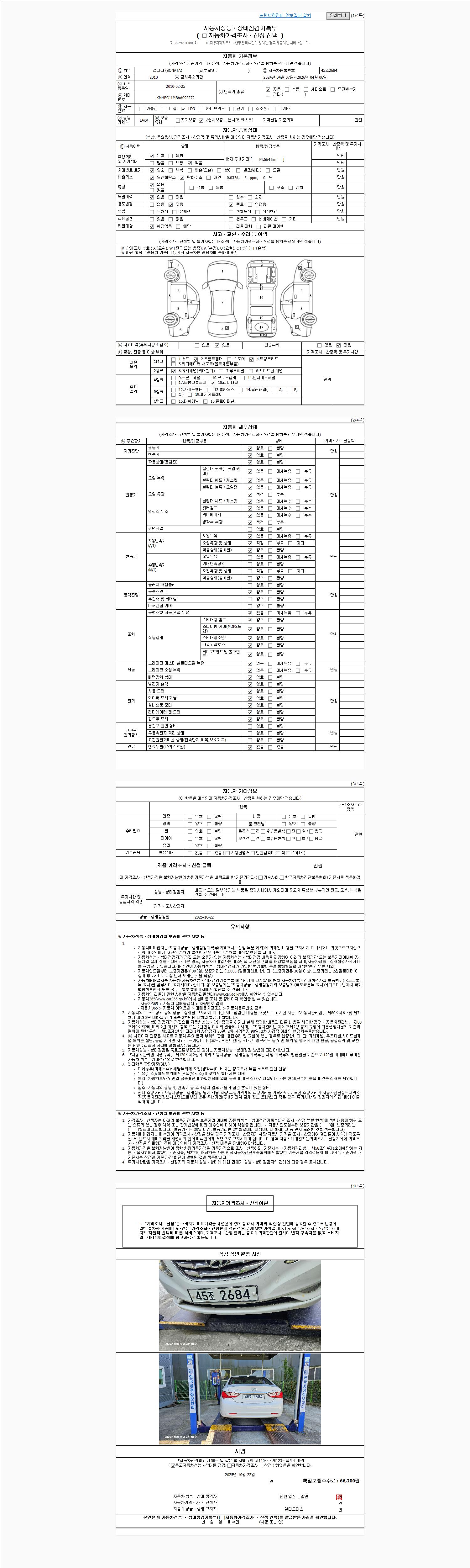 2. 차량 등록증이나 성능점검지 등을 상담자에게 요청및 확인하시고 사전에 미리 점검 하시기를 권유드립니다.