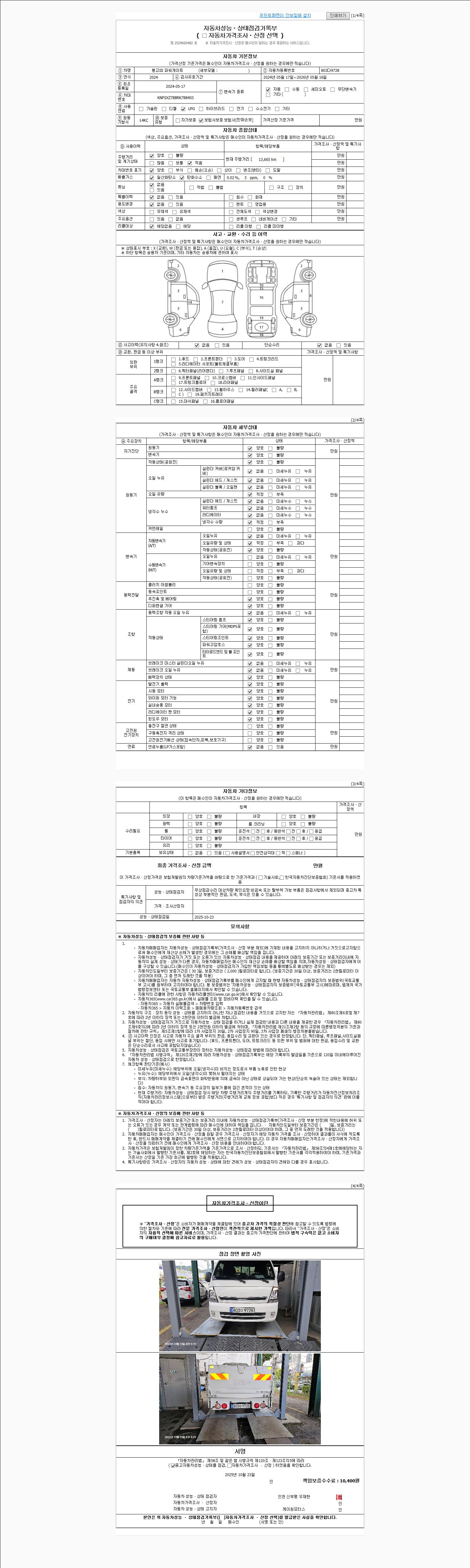 2. 차량 등록증이나 성능점검지 등을 상담자에게 요청및 확인하시고 사전에 미리 점검 하시기를 권유드립니다.