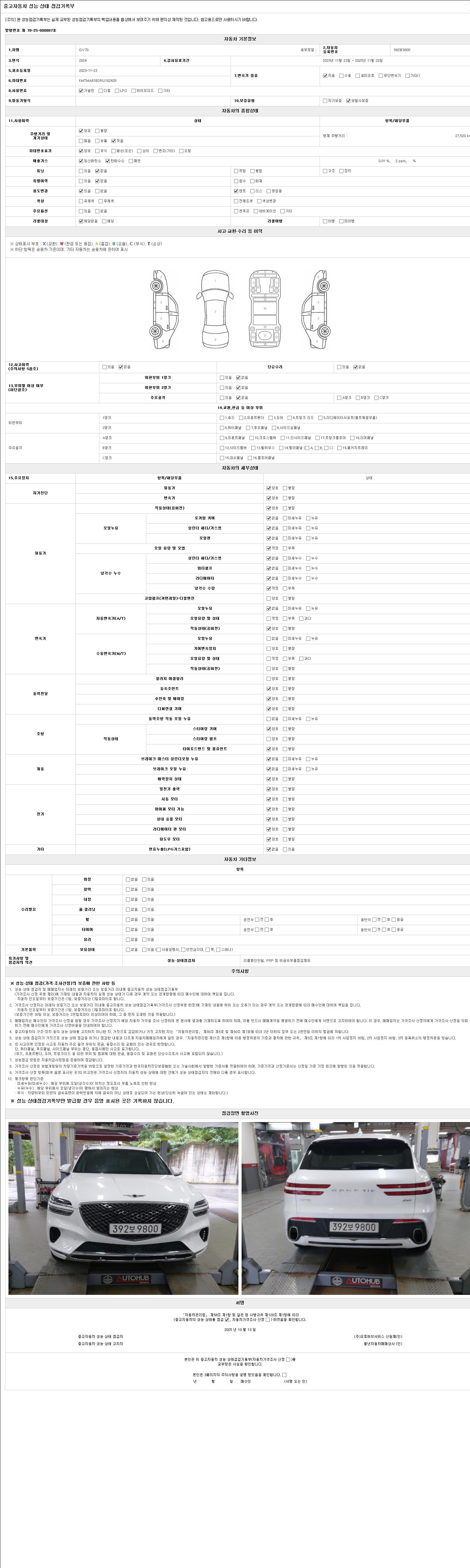 2. 차량 등록증이나 성능점검지 등을 상담자에게 요청및 확인하시고 사전에 미리 점검 하시기를 권유드립니다.