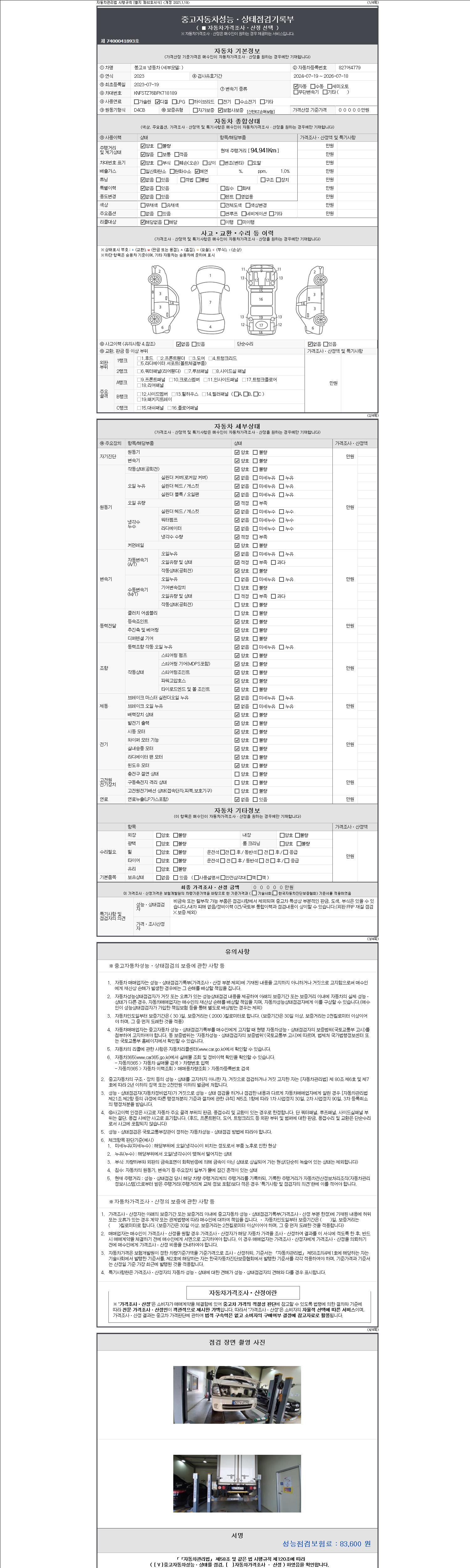 | 주행거리 | 94,941 km | 차량번호 | 827어4779 |