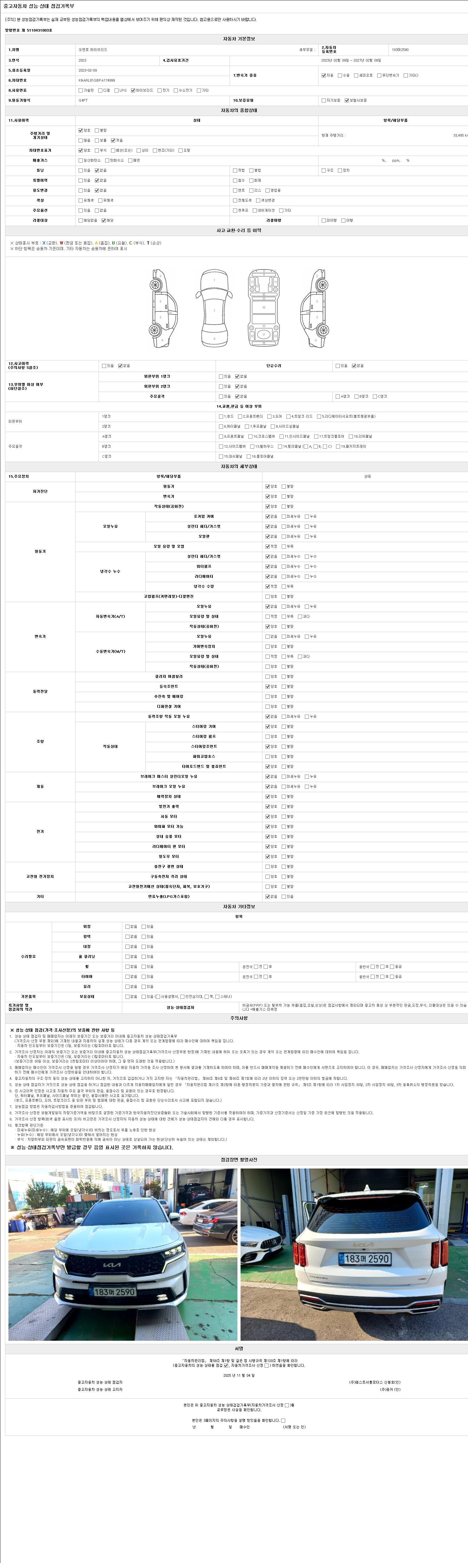 2. 차량 등록증이나 성능점검지 등을 상담자에게 요청및 확인하시고 사전에 미리 점검 하시기를 권유드립니다.