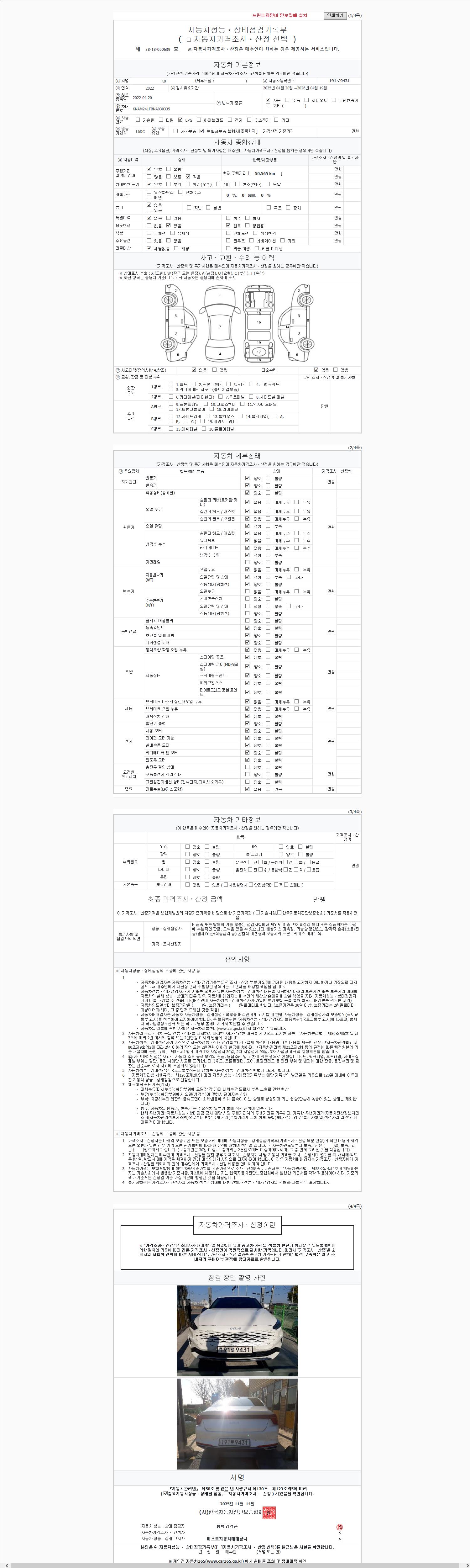 | 주행거리 | 50,565 km | 차량번호 | 191로9431 |