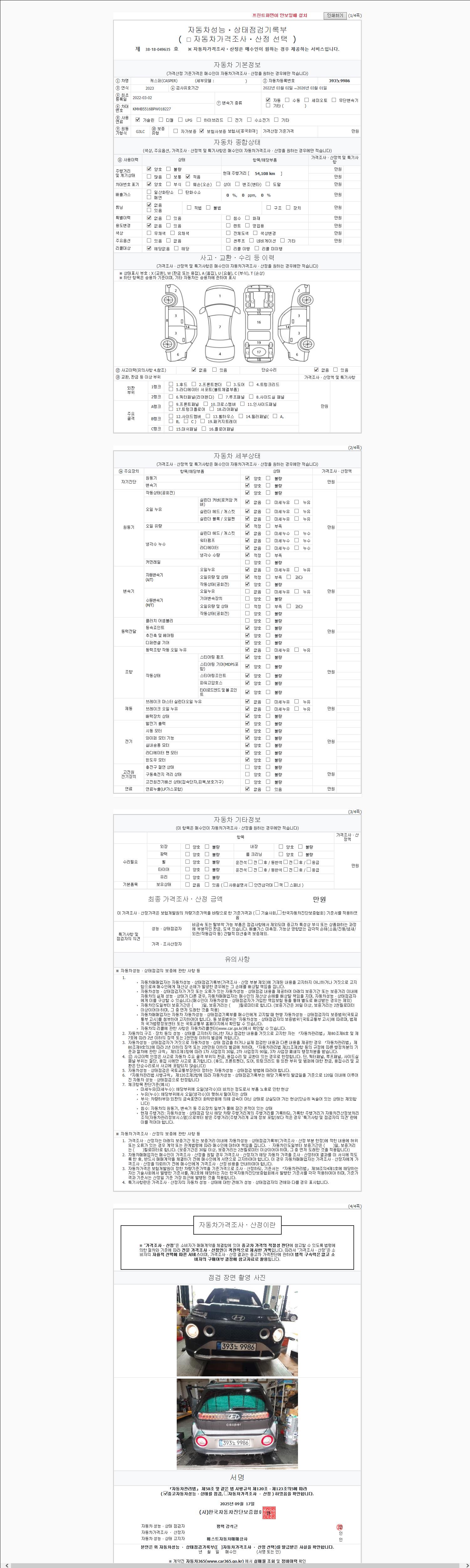 2. 차량 등록증이나 성능점검지 등을 상담자에게 요청및 확인하시고 사전에 미리 점검 하시기를 권유드립니다.